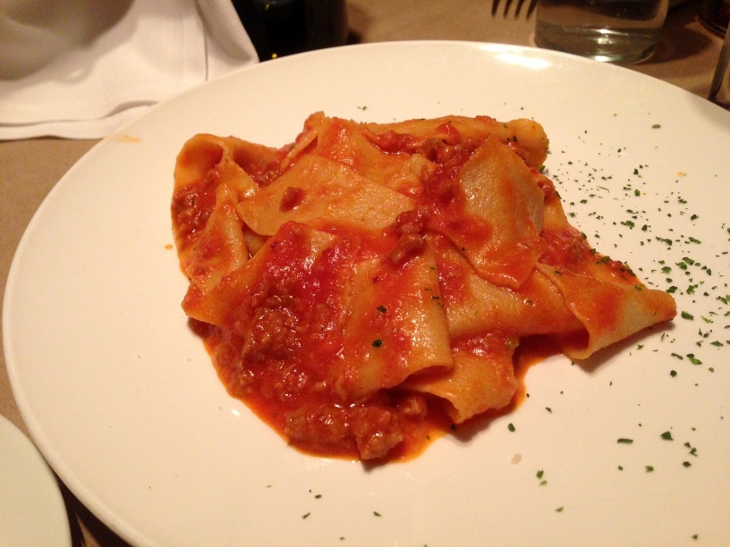 But I’m here for one of my old time favorites, homemade Pappardelle with sweet sausage and truffle oil (half a plate pictured below).  Its like a nice glass of wine where the scent of the truffles hits you right away, signaling the level of yumminess to the brain before you even taste it.  I order this in other places such as Il Melograno in midtown which I enjoy, but no one makes it like in Da Andrea.  Another winner was a rich but light risotto special.  Tiramisu here is top notch as well.