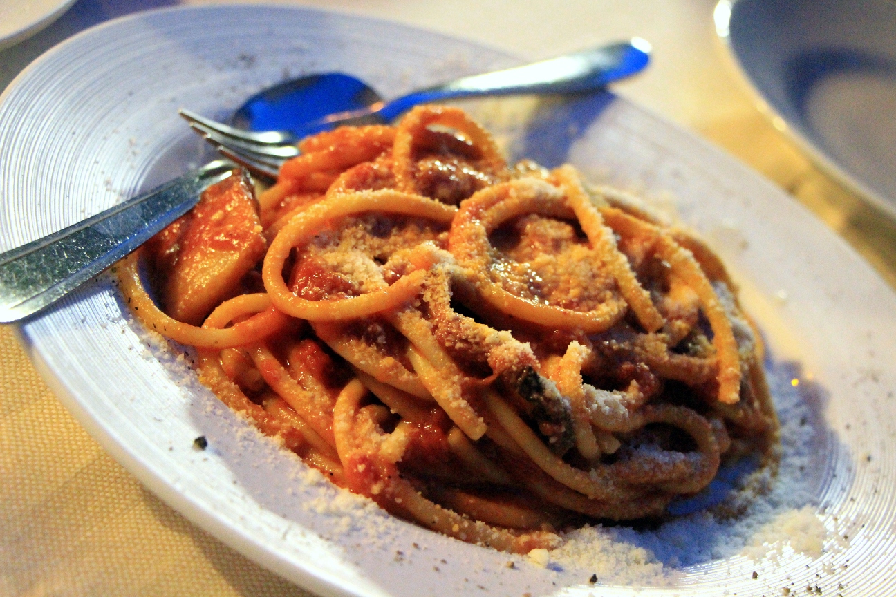 Cesare al Casaletto - bruschettaThe pastas were fine here but again the least memorable course as was the case with all the meals in Rome not named Sorpasso.  More of a testament to the other courses here really. You select a pasta type and the classic preparation. I wanted another Carbonara and Cacio but the wife said lets try something else so I opted for a Gricia with Tonarelli and Bucatini Amatriciana which was more satisfying. I realized I prefer all the classics over the Gricia overall.  Roman pastas to me is like Mexican food. A 3 to 5 ingredient shuffle.  Pasta, Pecorino, Guanciale, black pepper, egg or tomato sauce.  Stuff I would eat over Mexican food any time of course.