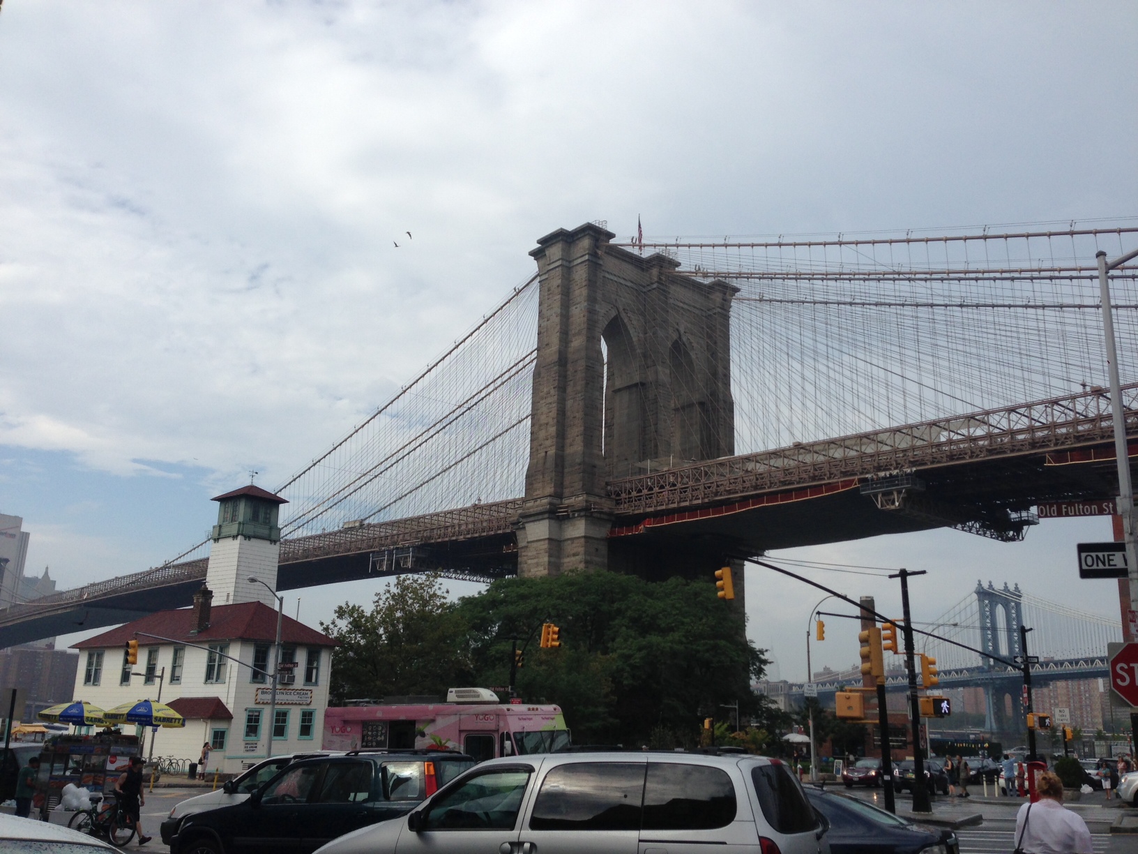 Picked up Mr Hummus Whisperer and parked the car by the Brooklyn Bridge on the Brooklyn side. Picked up a Citibike and rode the Bridge over to the other side. Unlike the day before where we walked the bridge after (and before) visiting the Smorgasburg in Dumbo (will try to write a separate post) the bridge in the morning was fairly quiet.