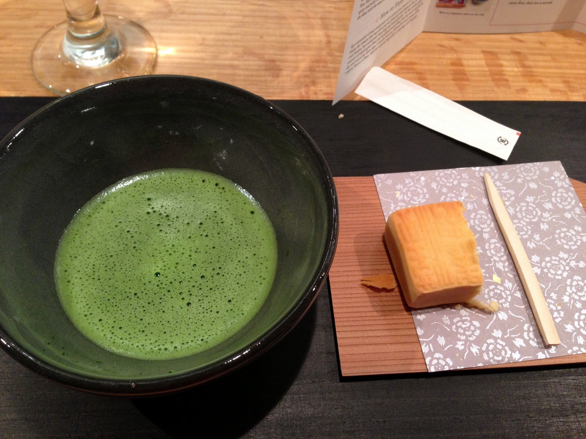 Anyway, the event featured the Ippudo founder serving a traditional Shojin meal that can only be had for that day only. Shojin is a totally vegan cuisine. A Ramen dish consisted of non-meat based soup, whole wheat noodles and a delicious vegetable tempura that you dump into the soup for added aroma and flavor from the oil and veggies. I enjoyed this to the last drop. We then finished the traditional meal with Matcha Tea and sweets. Except I screwed up, and forgot to turn the Chawan (tea bowl) clockwise twice before drinking. I think it means I will not have any more children, or puppies. With the master watching you the tea has to be drank to the last drop to show respect.