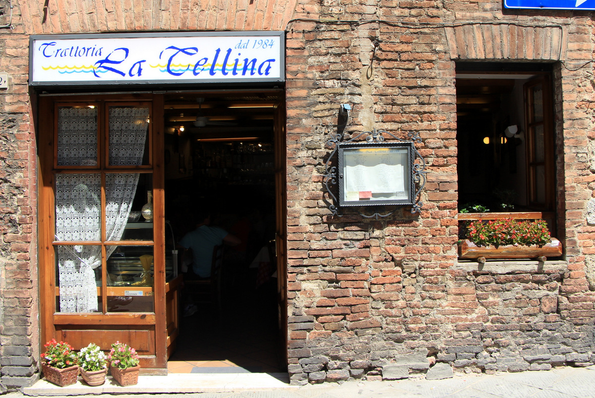 Italy - 2013 1449I don’t know why it took me so long to write about La Tellina.  Its not like I was busy writing about more important things.  But the truth is this was a memorable and fun lunch.  Picking this particular one I remember wasn’t easy, as I wasn’t able to find many bloggers or Chowhounders out there talking about Siena.  But as much as I prefer not to follow TripAdvisor forum recommendations, I’ve decided in this case to trust the Siena expert with a pizza avatar from Alaska.  Forum helpers with food, wine glass or Borat icons usually know their food.  Do not trust those with cute animals or pictures of their babies.