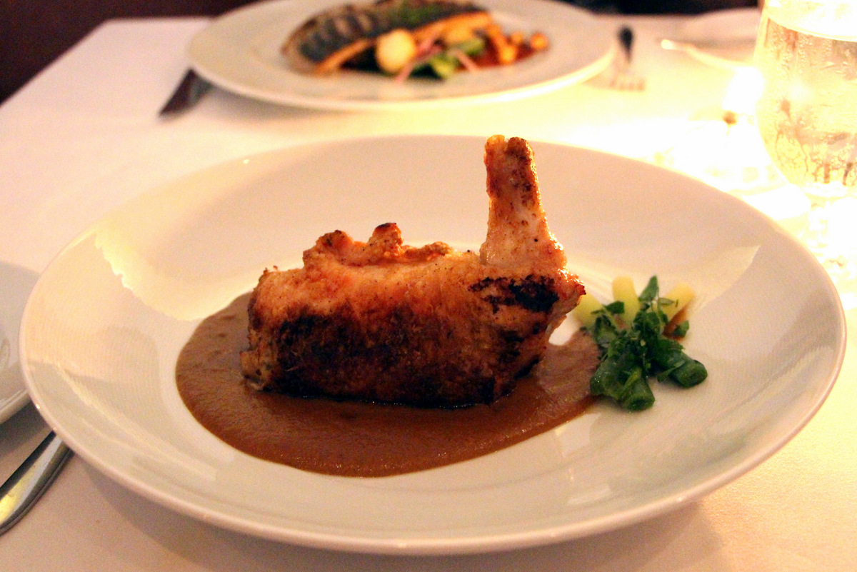 Pan Roasted Chicken – There are those places where you simply must order the chicken (the NoMad, KFC) and this is one of them.  Something Lo picked up from her work in Chanterelle.  Tender, juicy, perfectly crisped skin, stuffed with pigs’ feet and chanterelles and sitting on a bed of creamy puree of White Truffle, Sherry and roasted onions.  This dish was sensational!