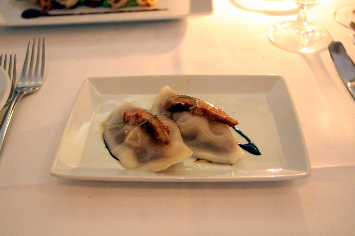 BBQ Squid, Thai Basil, Fresh Peanuts and Edamame (top) -Perhaps the dish of the night.  You just cant get more tender, better tasting squid than this.  With the peanuts probably getting boiled the heck out of them until their texture pretty much matches the Edameme, the sweetness from the Howisin sauce and minty hints, you got yourself a great dishAnnisa Dumplings