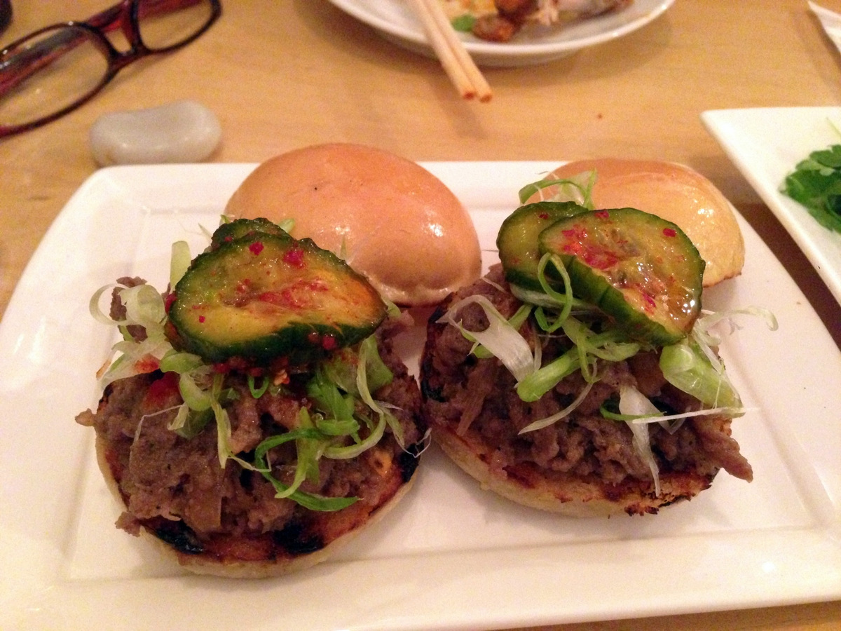 Bulgogi Beef Sliders spicy pickled cucumber and scallion salsa – One of Danji’s specialties. Small and explosive