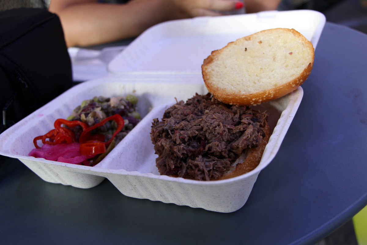 Real tourists, you are standing on the wrong line.  Instead of tacos, you need to stand for the greatest Brisket in the tri-state area, Delaney’s Brisket.  It was comical to see no line to this while a long line for the tacos.  A trip to Briskettown the flagship in Williamsburg may also be necessary if you are a brisket fan.  I once drove for takeout with the Hummus Whisperer to bring back to Staten Island.  Also right next to Delaney is great gelato from L’Arte del Gelato and not too far, north is a La Newyorkina stand offering artisanal ice pops.  Don’t discount those stands, as this is great stuff folks.