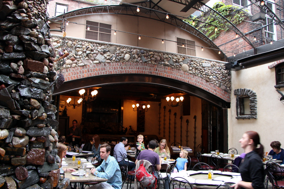 One food related task that I dont particularly enjoy much is picking a place for a family function. Normally what I have to deal with is a large group, not enough time, a place we havent been, not too adventurous Italian. Good luck, you have 24 hours. Normally I enjoy picking restaurants but this can be as much fun as a vasectomy consultation (ok, last vasectomy joke this week I promise. Its not even that funny if you ask me). But somehow, by pure miracle, perhaps with the help of Whole Foods cereal I was having that morning, I came up with the perfect spot. No problem reserving a table since the place has been around for a while, perfect menu for this crowd, and a table that is… let me put it this way… If Don Corleone ever needed a table to entertain 20 of his immediate family in NYC, that is the table he would get. Located in the Crispo garden, partly covered which was perfect for a cool summer night, this table set the tone to a beautiful dinner.