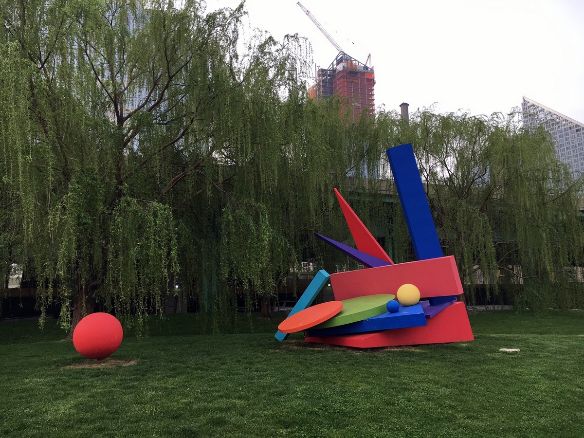 Hop on a bike across the street in front of Daisy May’s BBQ (best BBQ in the Hell’s Kitchen) and head west toward the Intrepid. Cross the highway, take the mandatory selfie with the ship and head south… but before you do that, if we are still good with time, lets go the other way, North (not marked on the map) for a rather short distance. You will pass the city’s most ambitious, craziest project, dubbed the Hell’s Kitchen Pyramid, on 57th. This is actually my view from my office in Hell’s Kitchen. I had no idea what it was until I read about it on a flight somewhere. Bjarke Ingels is this Danish architect sensation, and this is his first project in NYC