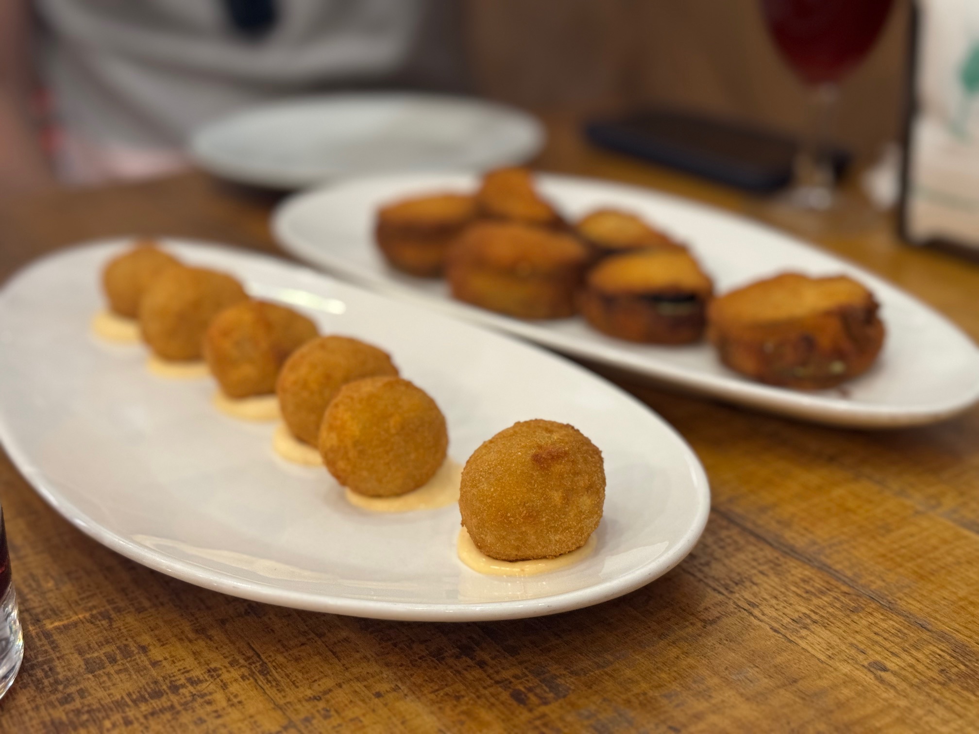 Crab Croquetas was yet more awesomeness. Unlike other Croquetas we had, there was flavor and texture here. One of the surprising items we’ve seen on various menus is Canelones, like the Spanish Cannelloni. This one stuffed with Iberian pork and Roquefort sauce. Exquisite stuff. The only thing that was average here was the cakes. They ran out of Torrija before opening somehow! Maybe one of the cooks had a tough breakup last night. South of Spain rule of thumb: Order Torrija and/or cheesecake for dessert everywhere.
