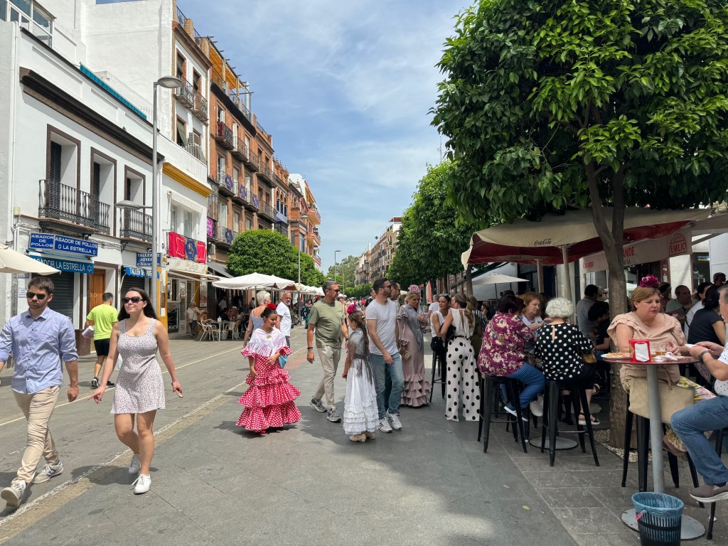 Once you cross the bridge into the colorful Triana neighborhood in Seville, you will find yourself glaring at the scene of Calle San Jacinto, before joining the scene. Close the street to car and horse traffic and you get a party. Yes, in Seville you need to also keep in mind horses, especially during the April Feria. That means declaring a designated horse poop spotter that leads the pack and warns the rest of the group. Preferably the one that had the least Tinto de Veranos for lunch. It’s V E R A N O! If you are Italophiles like us, you will struggle with the name big time.