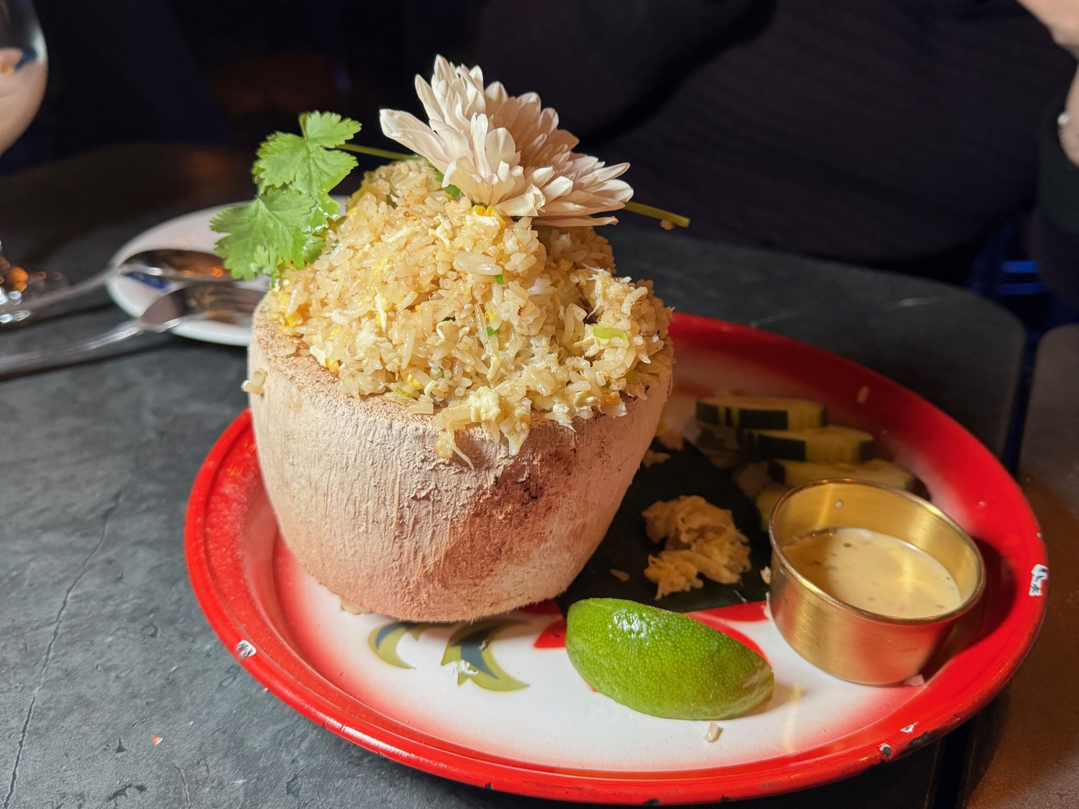 The Pad Keep Mao (Drunken Noodles) is above average. Although I really need to stop ordering this with a protein other than seafood. I’ve had the seafood version at RUA on a lunch visit once and it was outstanding. Another signature is the Mama Tom Yum Grilled River Prawns with noodles and veggies spilling out of the Mama bucket. Yes, get this. Good crab fried rice as well although I regret not getting something a bit more interesting for the same price like the Crying Tiger.