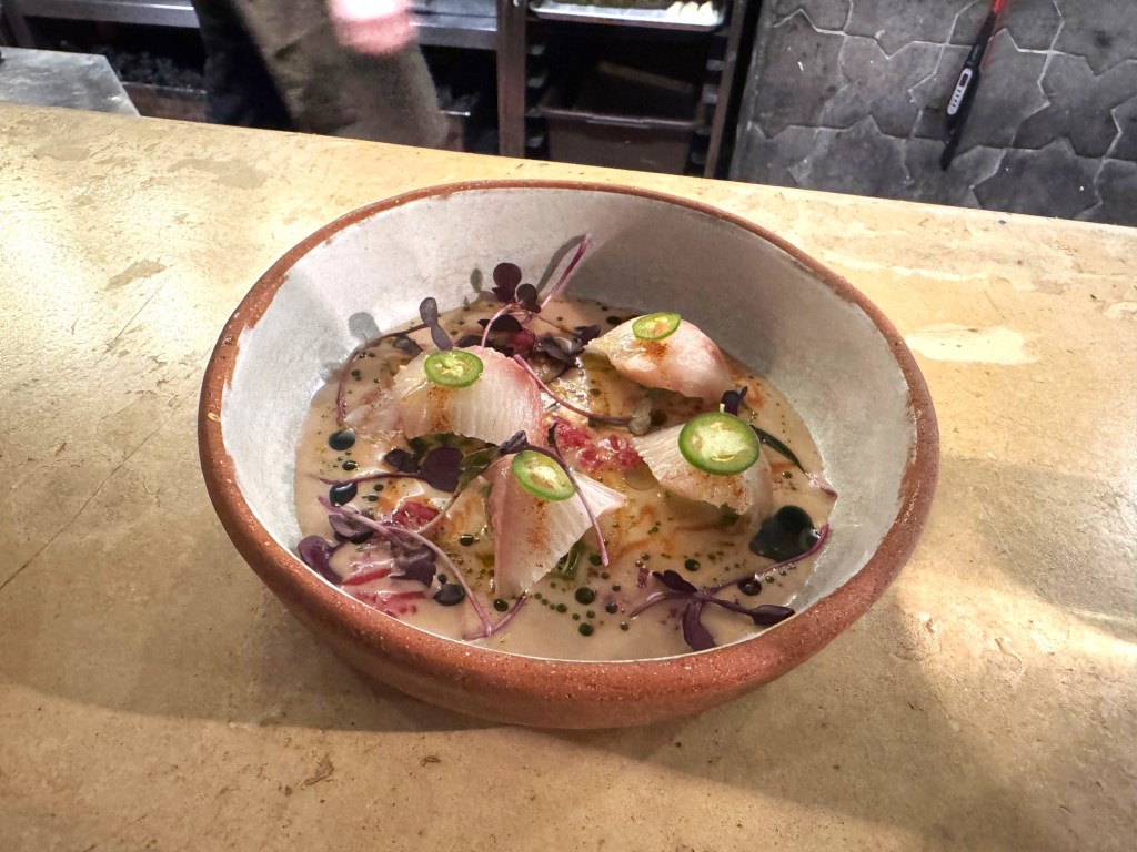 Hiramasa – The most hyped Crudo on the menu was surprisingly just ok for us. They age all or almost all their fish, but here the 4 delicate cuts get lost in the shuffle of sauces and avocado (hiding underneath). Good flavors but mostly not from the fish. Perhaps in other places, this would have been more of a highlight.