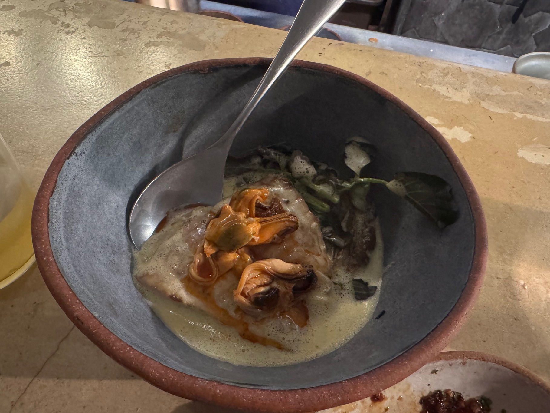 Hiramasa – The most hyped Crudo on the menu was surprisingly just ok for us. They age all or almost all their fish, but here the 4 delicate cuts get lost in the shuffle of sauces and avocado (hiding underneath). Good flavors but mostly not from the fish. Perhaps in other places, this would have been more of a highlight.