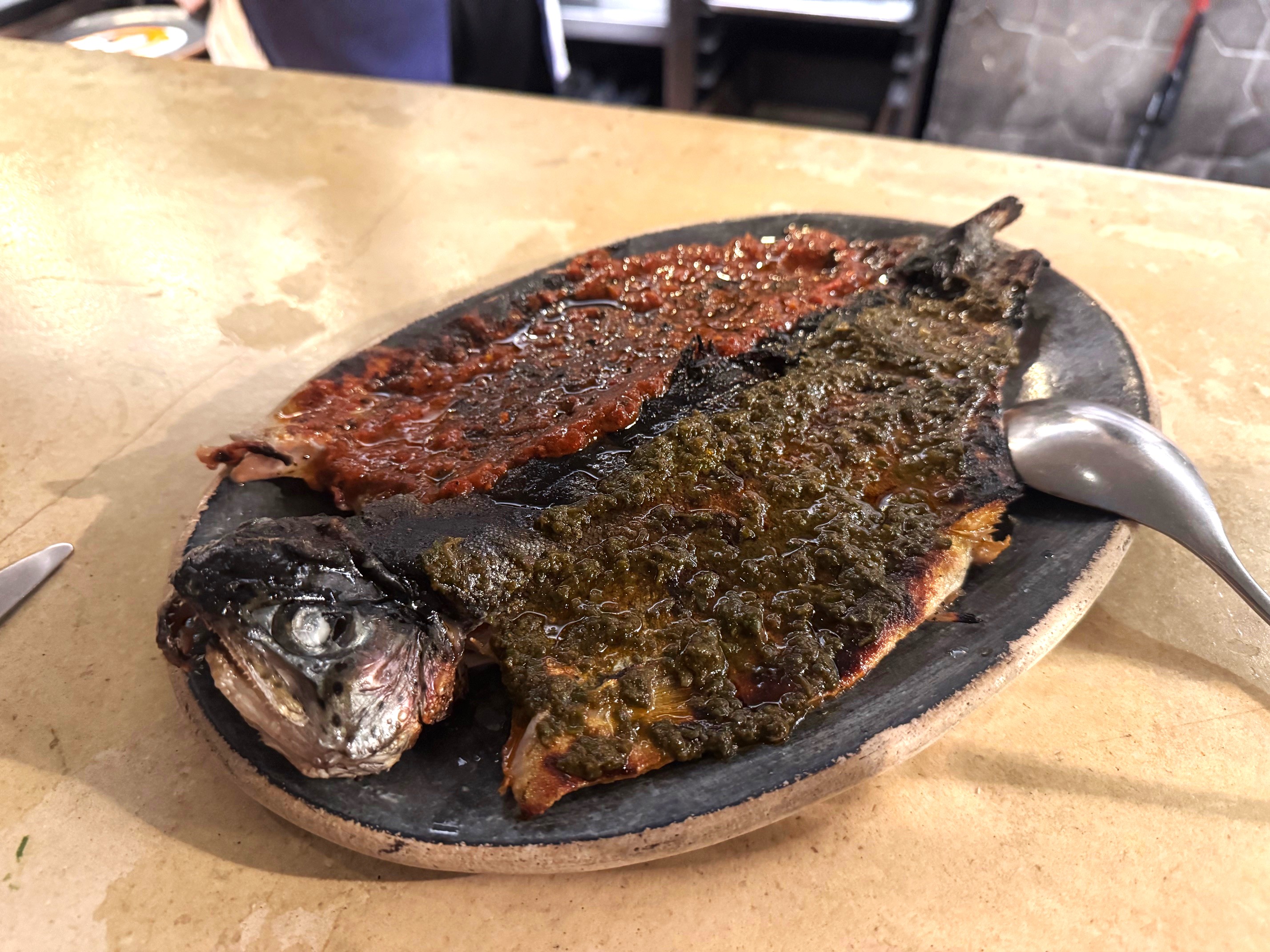 Whole Butterflied Trout – Mexico City style, Harissa on one side, and Chermoula (The North African Chimichurri) on the other. The sauces were very mild which was a good thing. Much of the richness came from the Pil Pil sauce at the base. Very good overall, but a very large dish without any sides. Maybe some rice, or even pita bread would be nice. Or at least serve the cabbage dish with it if ordered.
