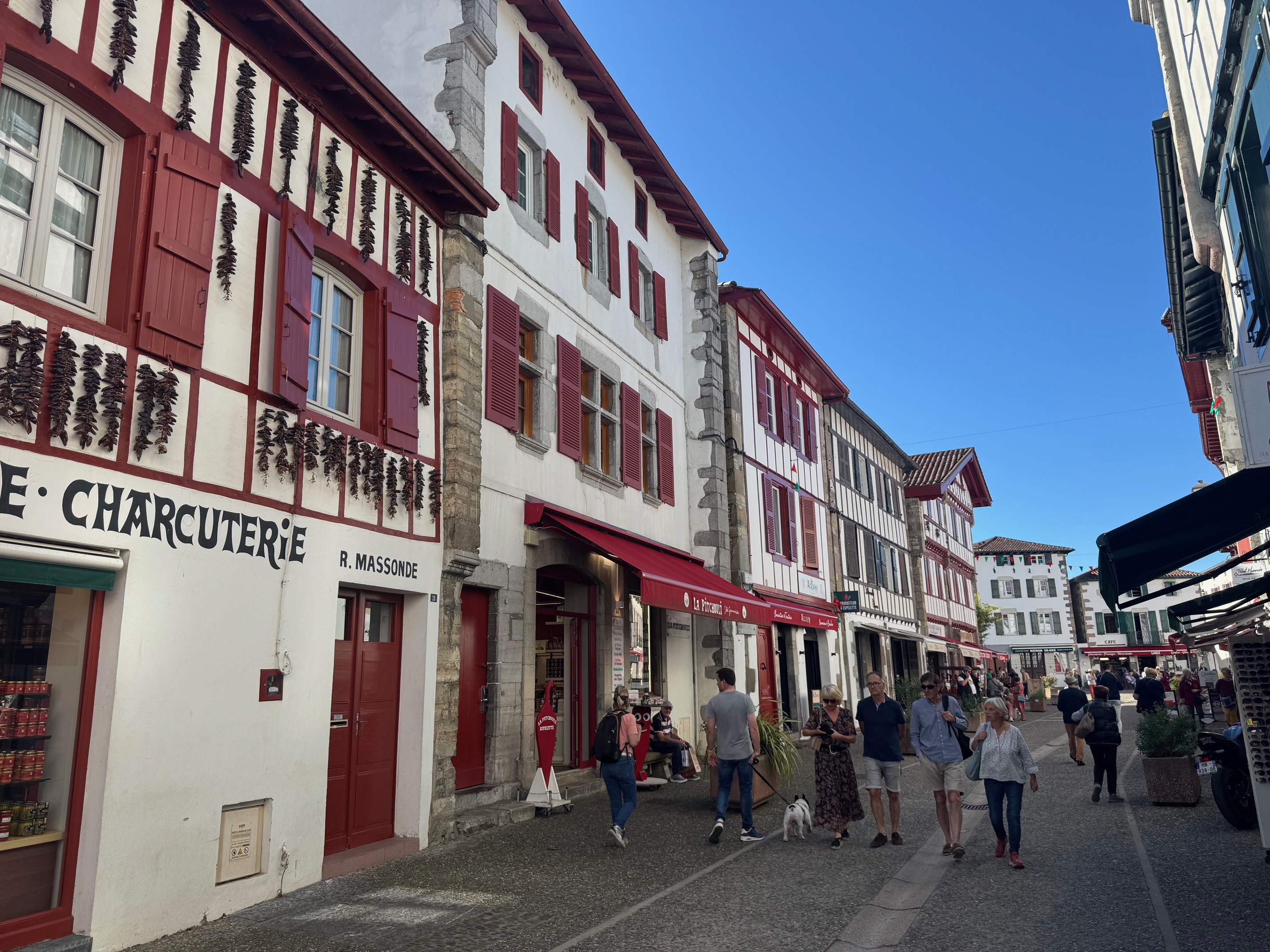 Next, a 30 minute or so drive to Espelette, one of the most famous towns in the entire Pays Basque. Even when visiting Biarritz and Saint-Jean-de-Luz (The previous dash record holder), you begin to appreciate Espelette’s fame. You’ll see Espelette stores, postcards, and the famous Espelette pepper products all over the region. The town is famous for its pepper, but even if you take the pepper out of the equation, it’s still very pleasant.