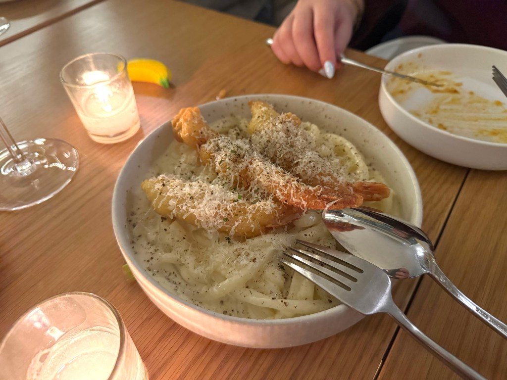 Shrimp Alfredo – Succulent Udon noodles with large fried shrimp. Nice to have in cold weather, but not as memorable as the others.