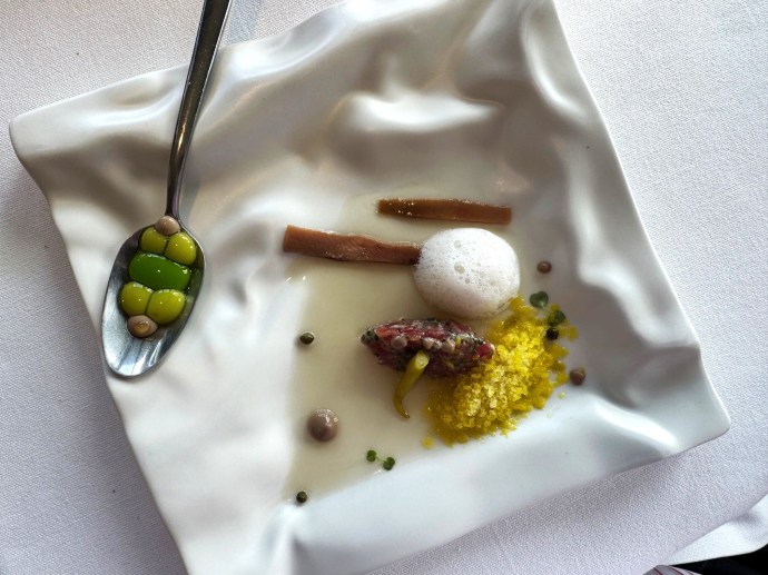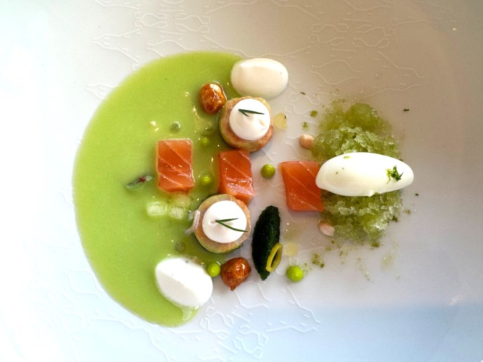 We have a love hate relationship with Monkfish these days. When its on its on, but on occasion, it’s less than stellar (I’m looking at you Eunoé in Paris). Some either work with this fish for the fist time or trying to be too innovative. At Ezkia in the tiny village of Bidart, the young chef got it right. Expertly cooked pieces swimming in a complimentary rich seafood bisque. Back to love.