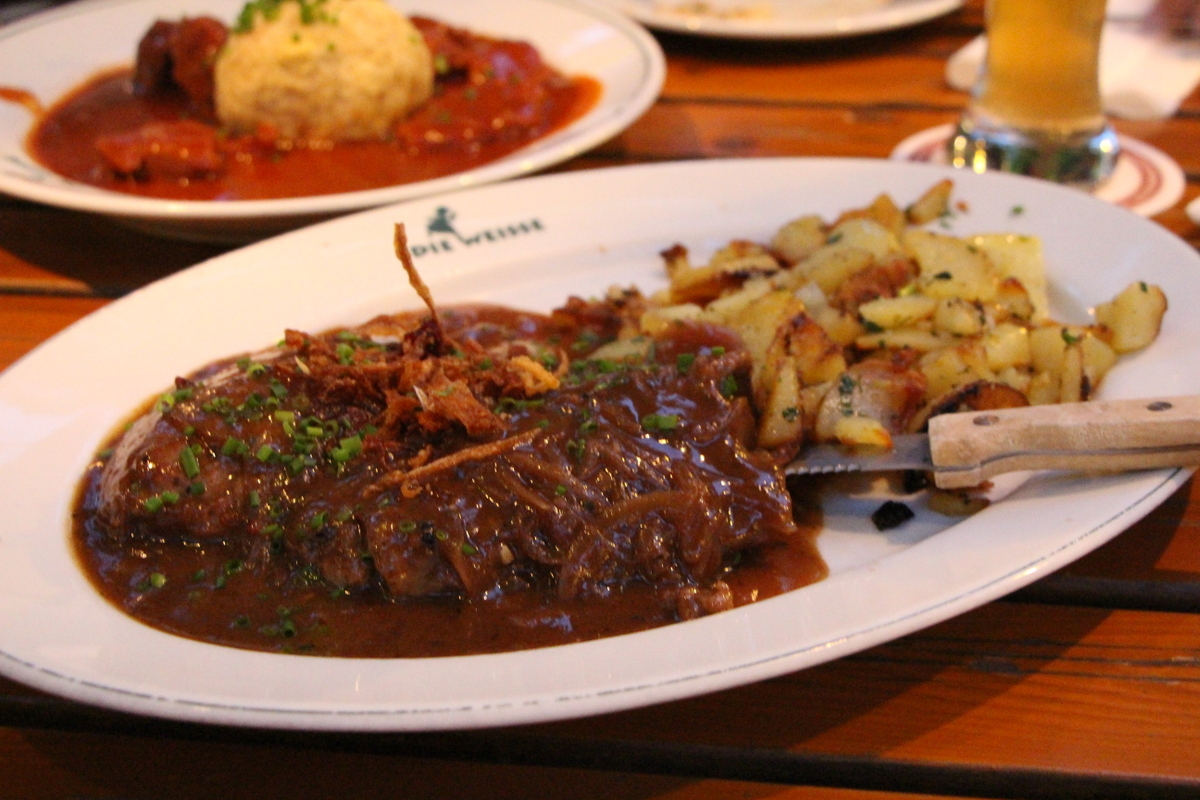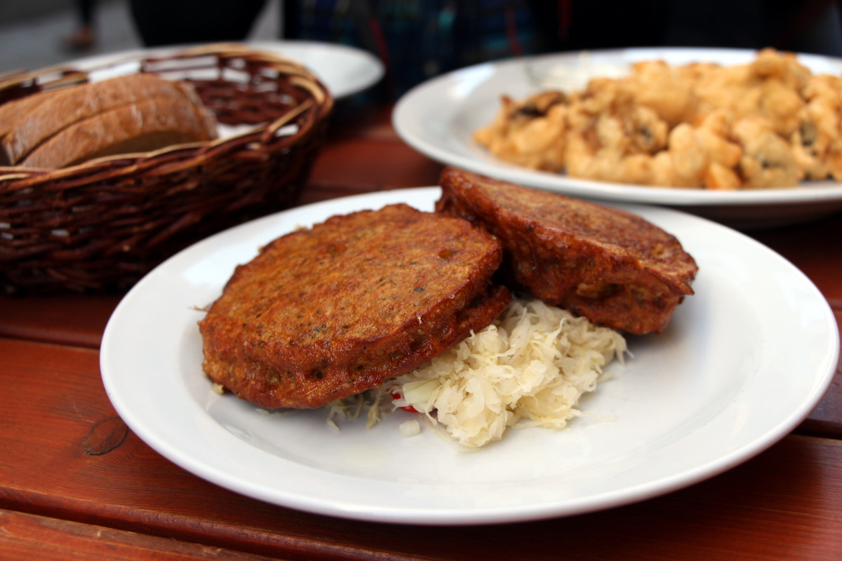 At Provaznice we learned about what happens to cheating Real Housewives of Praha. Nothing better than a nice meal with a life lesson on the side for the ladies. Relatively quiet side street by the same name in the center, with community tables on the sidewalk. Our first foray into the town’s celebrated Pilsner Urquell scene. The goulash and the schnitzel did not disappoint, and so was our first pork knuckle (of many to come, even when we were offered “oxtail” in Germany). But the most memorable item was one of the more healthier local vegetarian options, fried hermelin cheese! Skip the fried mushrooms unless you enjoy eating fried dough (like Beignets that took a wrong turn in the cooking process).
