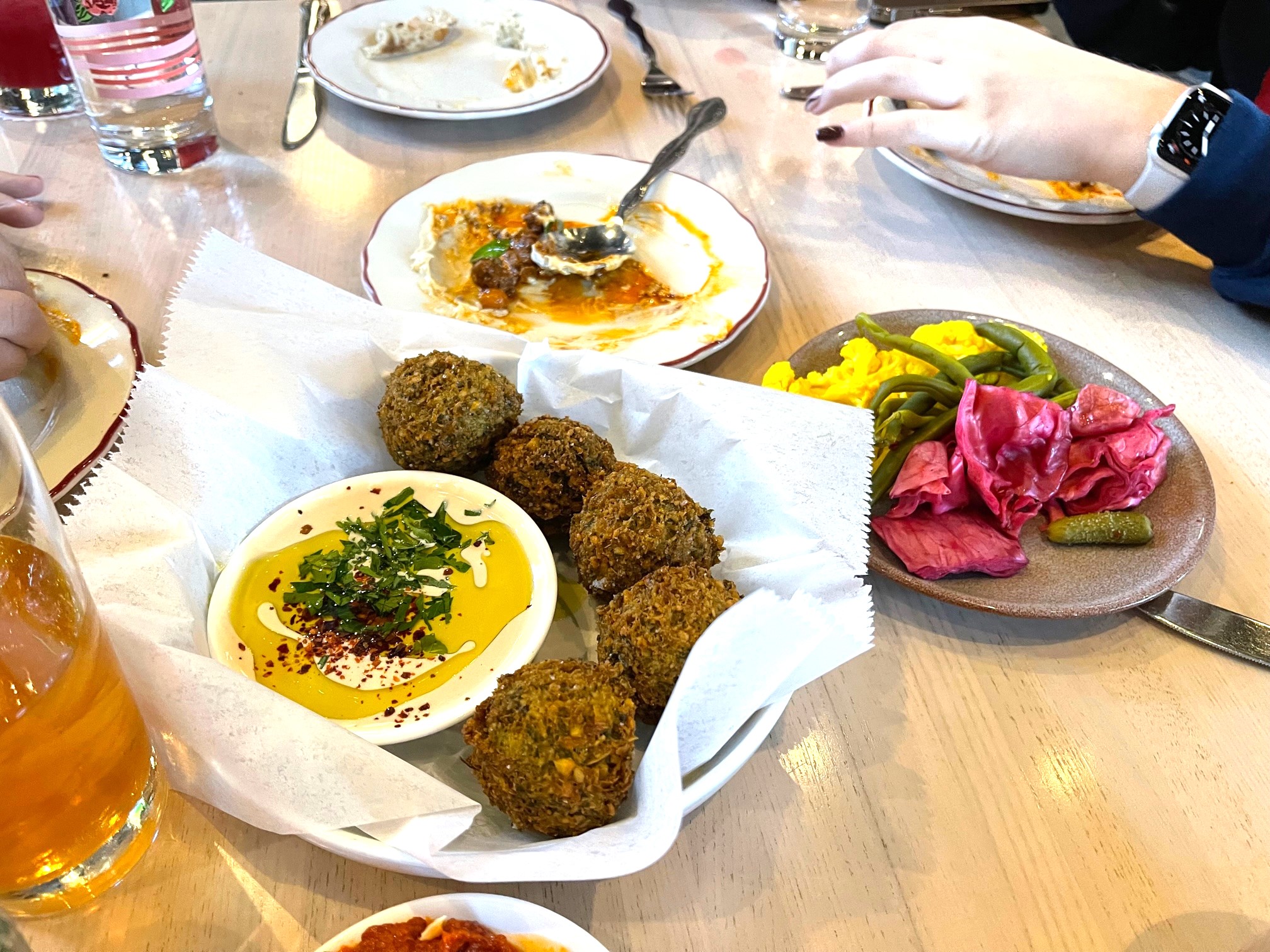 You can even add “+ Falafel” to the wall. Golden crispy exterior, and creamier than your usual green interior. The Salatim (small, mezze like salads) is another thing from the Solomonov playbook, and every single one we tried was spot on. The Lutenitsa especially stood out, but I wouldnt skip the smoky Baba and the peppery Muhammara. You can have a satisfying meal with simply the dishes I mentioned so far.