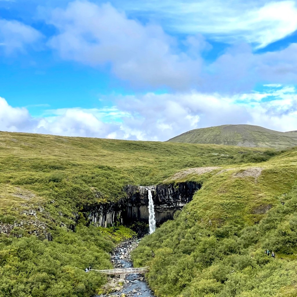 Svartifoss –  “the black waterfall”, the basalt columns inspired the design of Hallgrímskirkja church in Reykjavík. parking 700 ISK, 90 min round trip.