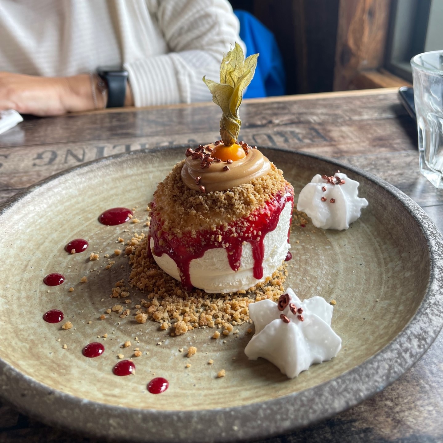 This may confuse some folks that are well too familiar with Iceland or those serial researchers that read about Höfn being the Langoustine capital of Iceland. You would think the Langoustine would get smart by now and swim elsewhere. But there’s no need for that as Iceland is in the midst of a fishing pause so Langoustines are imported these days. Still, we enjoyed Langoustines here even though we found them on the softer side. But it was really the dessert that got our attention. Beautiful layers of Skyr mousse, Tahiti vanilla, ample crunchy crumble and caramel. An absolute Triumph.