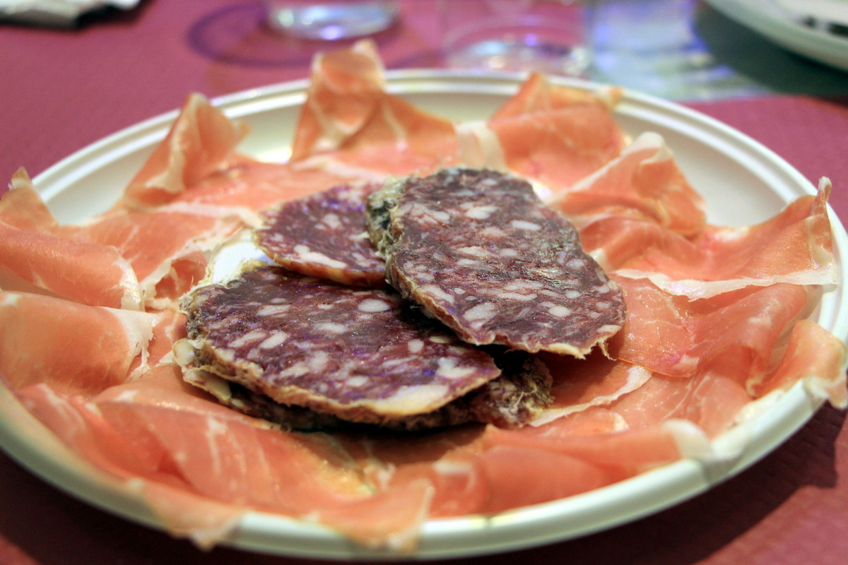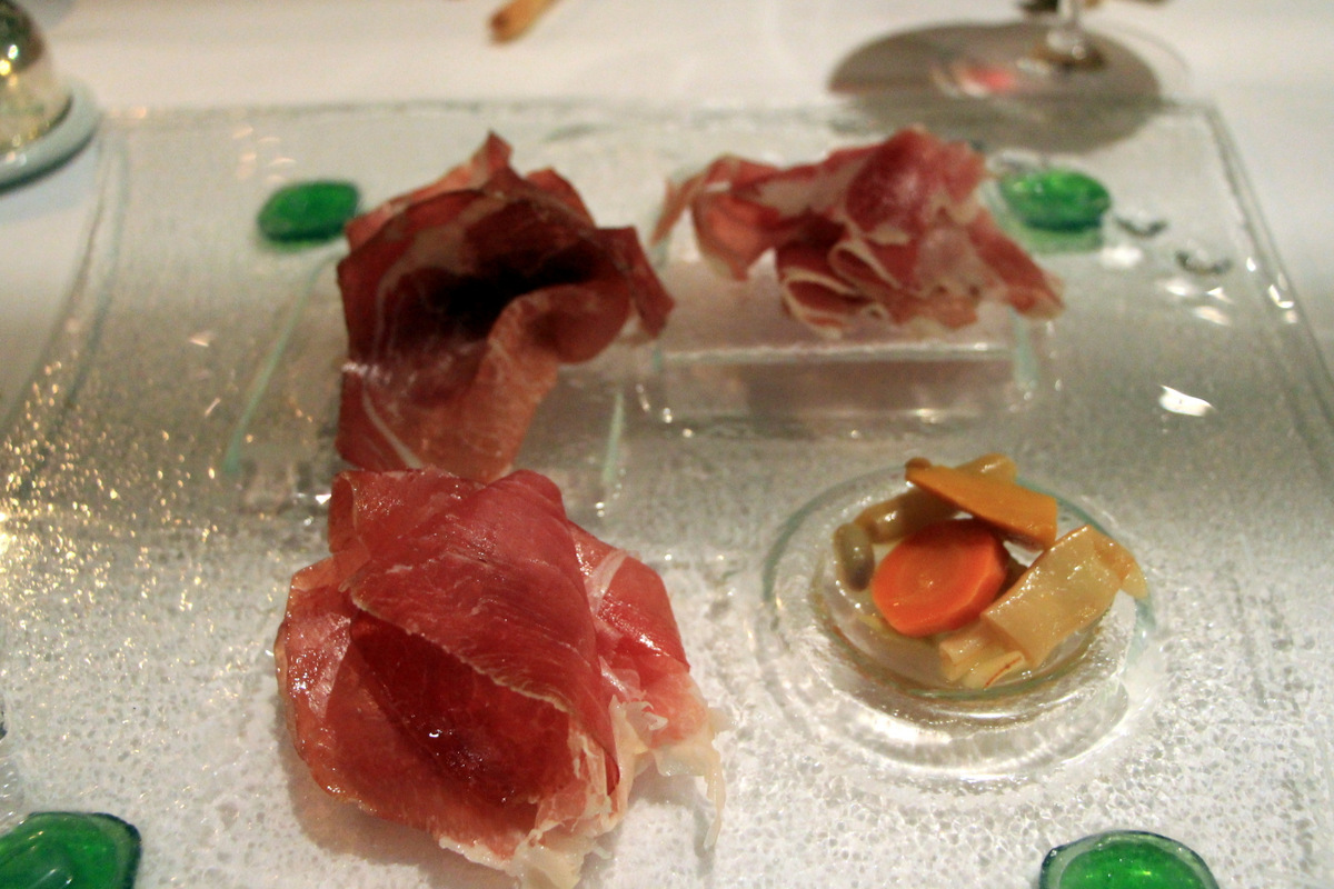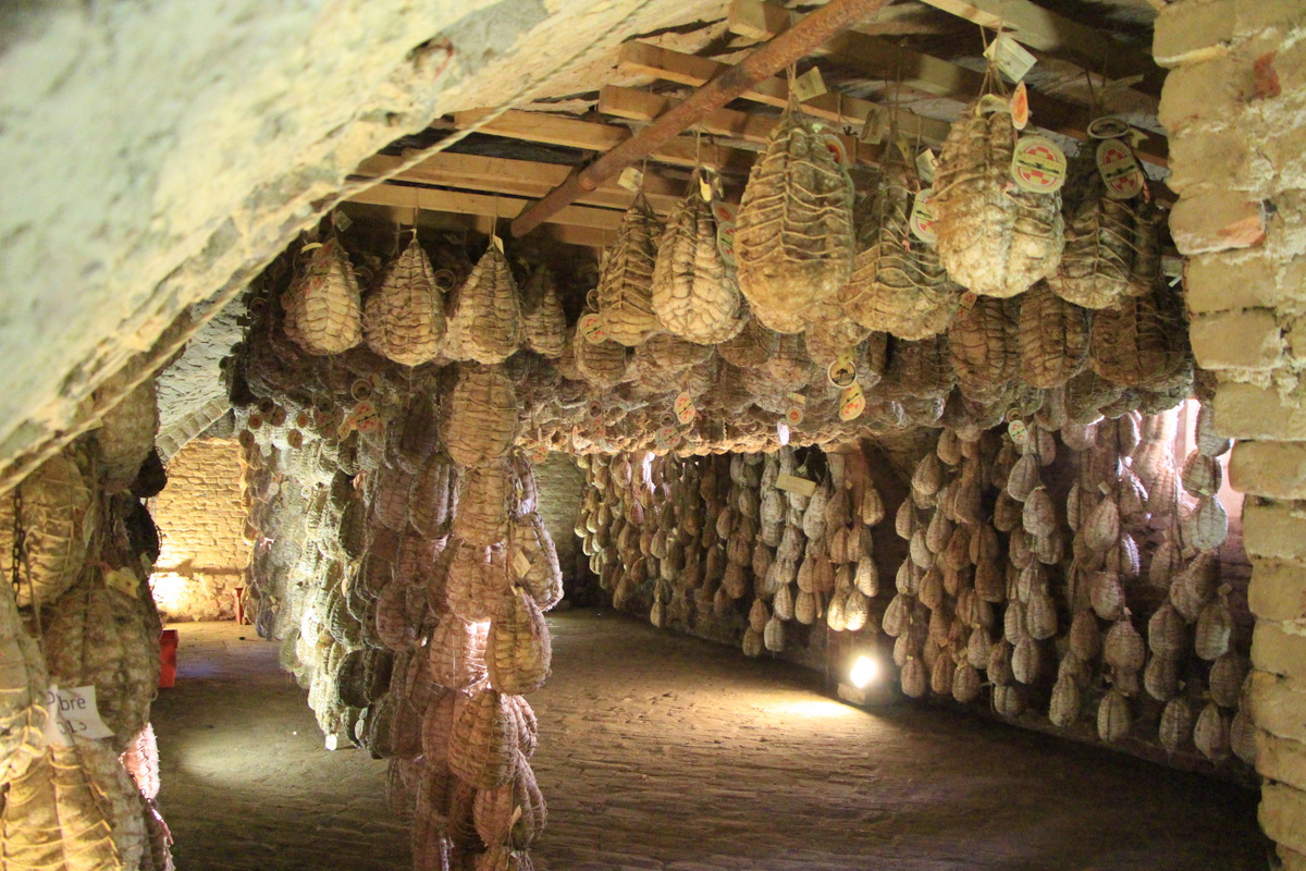 Culatello at Antica Corte Pallavicina – When life gives you a pig, you make Culatello. Prosciutto so prized it has a different name. And the best Culatello in the world can be found in this old castle perfectly situated by the foggy Po. After you visit their legendary cellar, ride their bikes, and play hide and seek with their black pigs, you are ready for this “Podium”. Three Culatello aged 18, 27, and a black pig beauty aged 37 months sitting on top like miss universe.