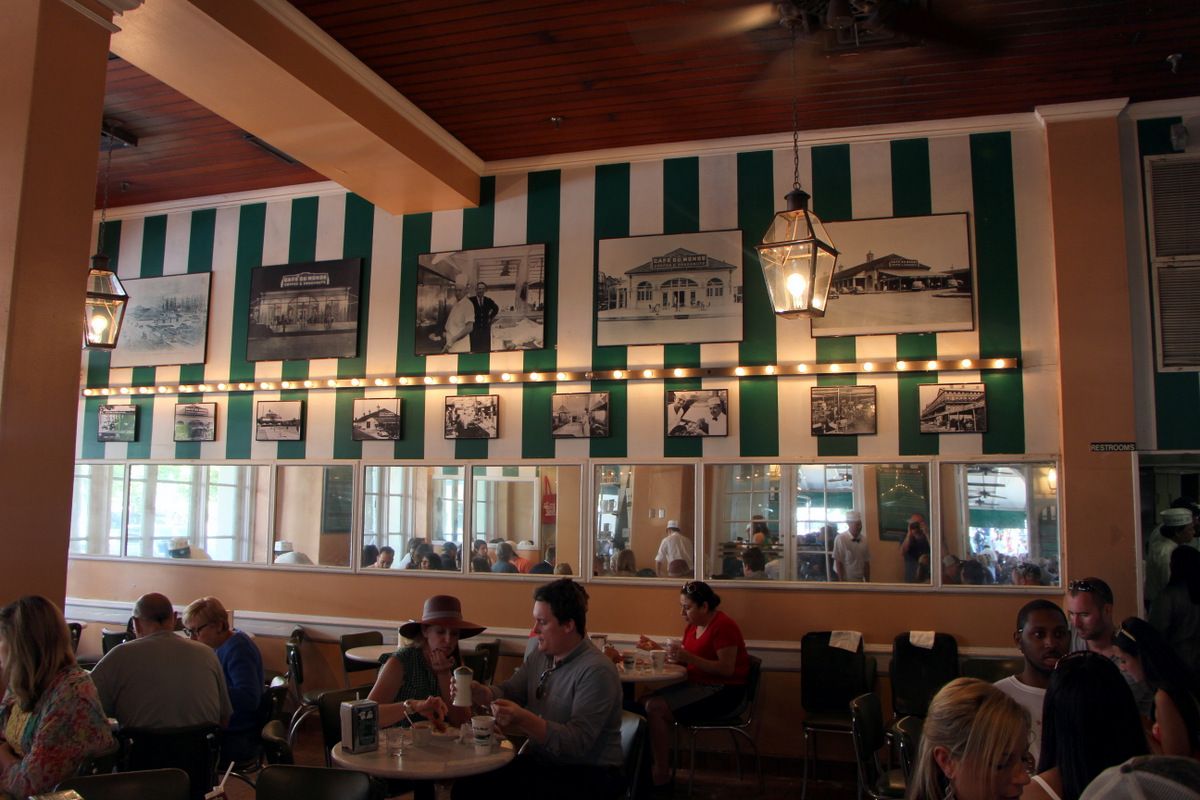 Café Du Monde – As much as I like the underdogs, CDM won the Beignet war by a small margin. Great texture, not too daughy, not too airy, just perfectly executed Beignets. The lines for seats look longer than they actually are. The lines for takeout look exactly as they are. Get a table, order the amazing Café au lait, Beignets (the only thing they have) and take your time to enjoy this one. Unless you’ve been living under a rock, or trying to pass a town not supported by Chris Christie, you probably already know about Café Du Monde, one of the greatest American institutions. BTW, once you are in looking for a table take a peak inside the building and try to grab seats there. Even while sitting out, take a look at the scene inside.