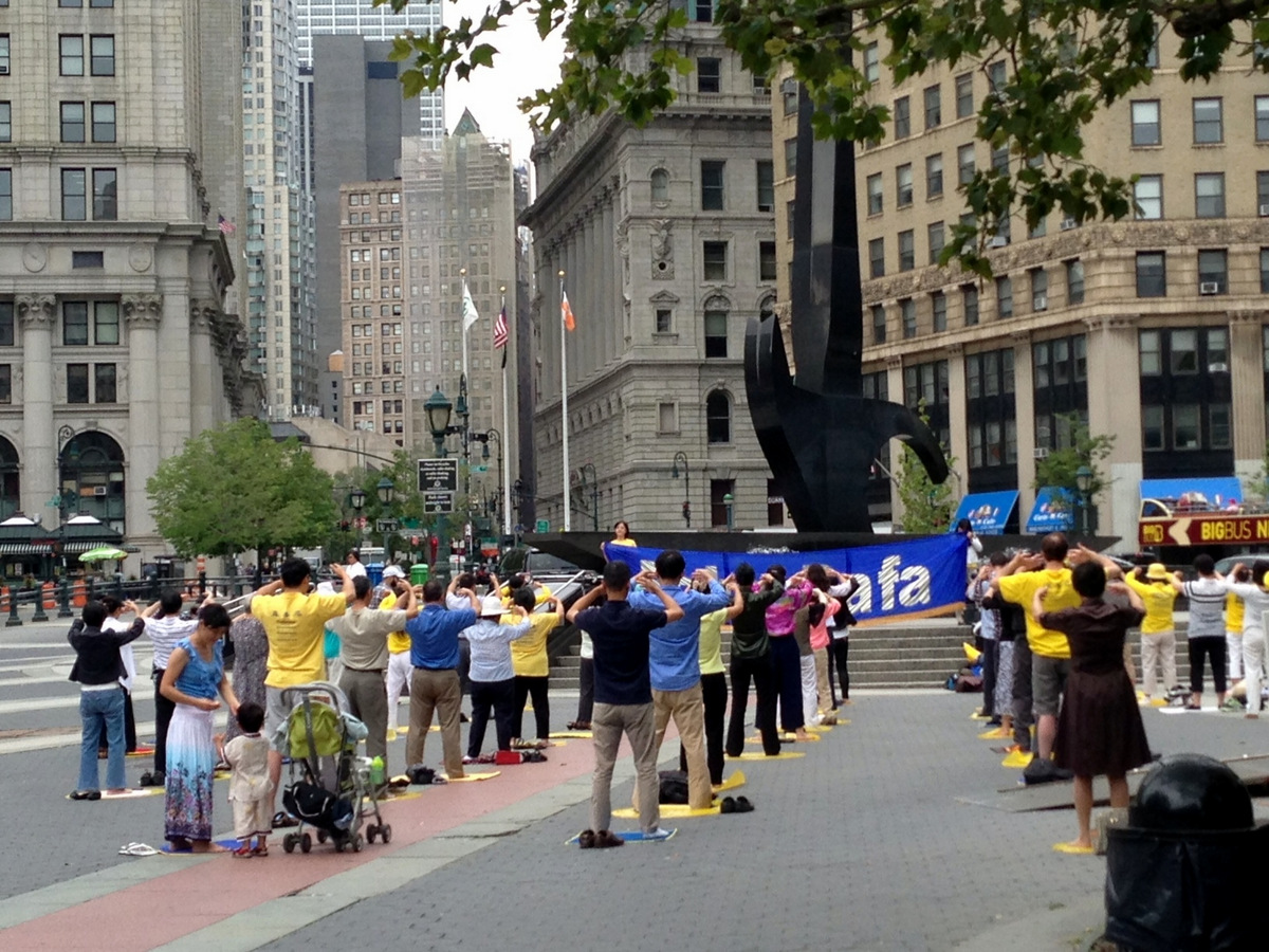 On the Manhattan side not too far from the bridge I noticed a large Asian group practicing Falun Dafa (or Falun Gong) meditation.  This practice which disciplines Truthfulness, Compassion, Forbearance, got so popular in china in the 90’s that it was quickly banned by the government as it was seen as a threat.  I was told by a Chinese woman that a million Chinese followers have either died or imprisoned over the years and the rest of the world cant do much about it.  Seeing this group was a sharp reminder that we take our freedom for granted.