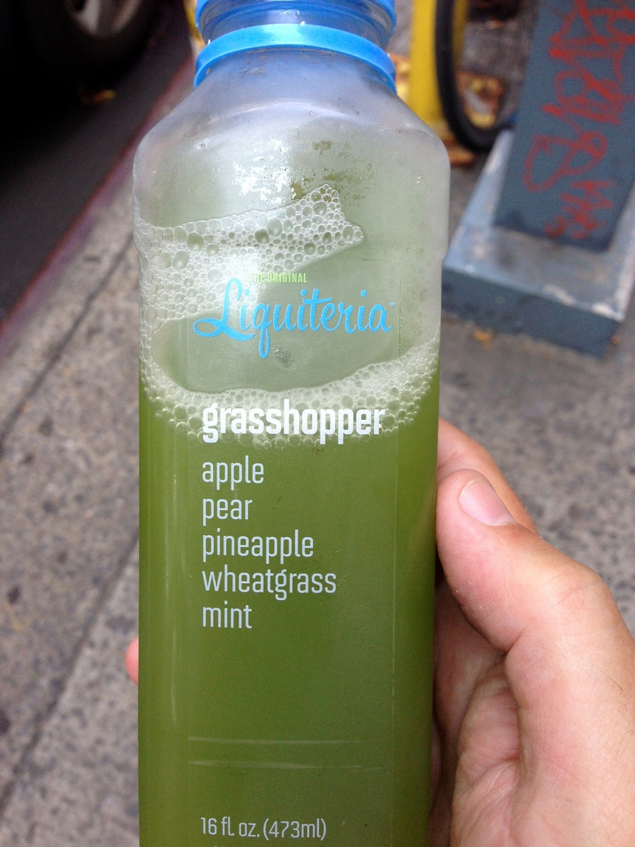 photo (99)We continued to ride to the East Village for a desperately needed thirst quencher and its pretty clear where we are headed since we get this drink on every one of those rides.  The Grasshopper at Liquiteria, a popular neighborhood fresh juice joint.  They used to make it fresh on the spot but now you can find it in the fridge on the left.  Try it with some Gray Goose for a much smoother Citibike ride