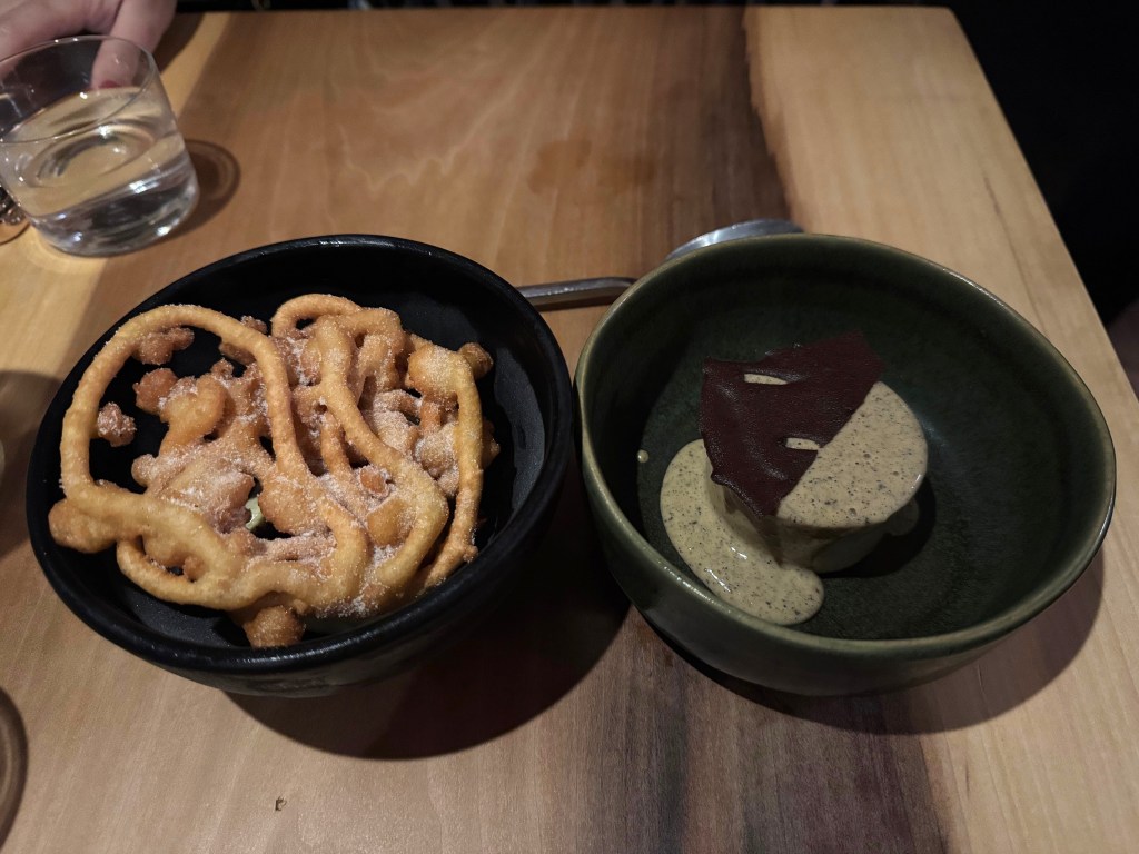 Desserts didnt quite continue the momentum. Took a major step back in fact. When you feel nothing can go wrong and you order two instead of the usual one. Chocoflan with truffles with real truffles, not chocolate truffles was the main offender. Truffles dont belong in desserts, full stop. Give me one of those Mexican flans with caramel any day. The Funnel cake with roasted pears and pistachio was more like it, but considering the place, still quite basic.