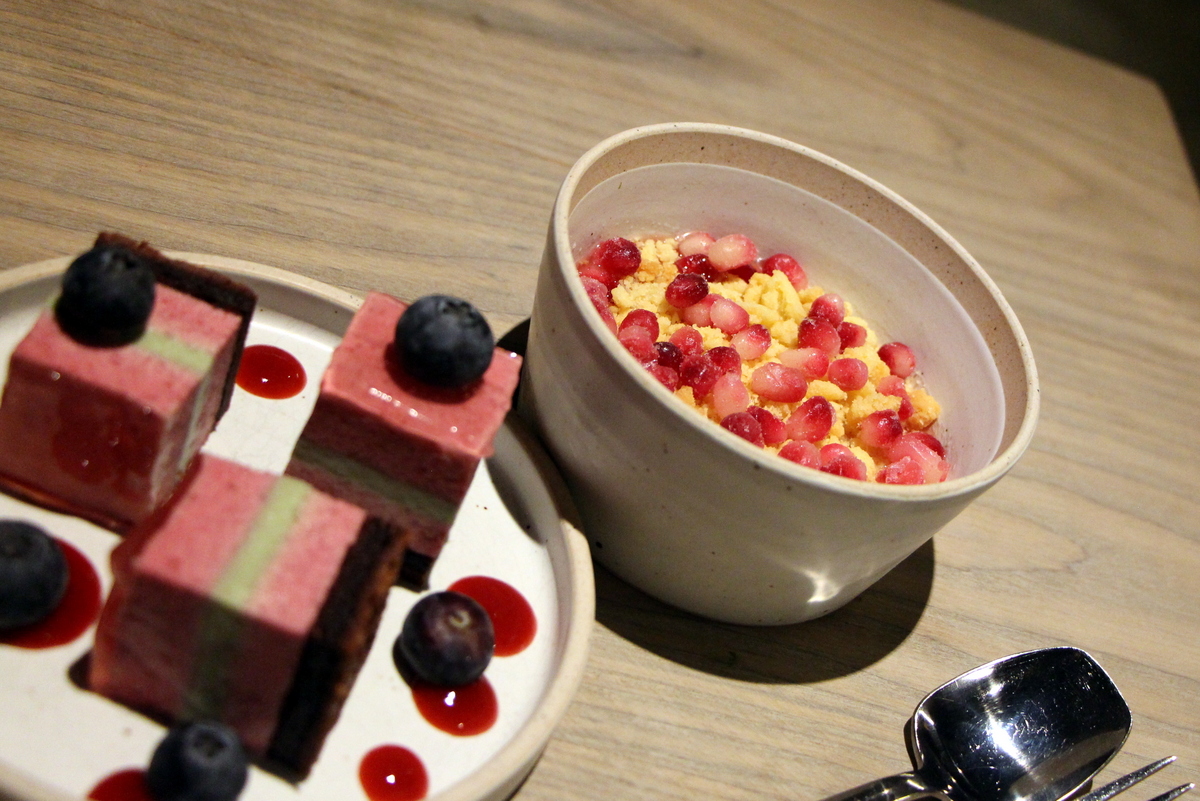 Chocolate Tart – This is were things just fell a little flat for me. There was a Tiramisu and another dessert, but this one looked most interesting. A not so inspiring dark choc tart with hazelnut mousse.