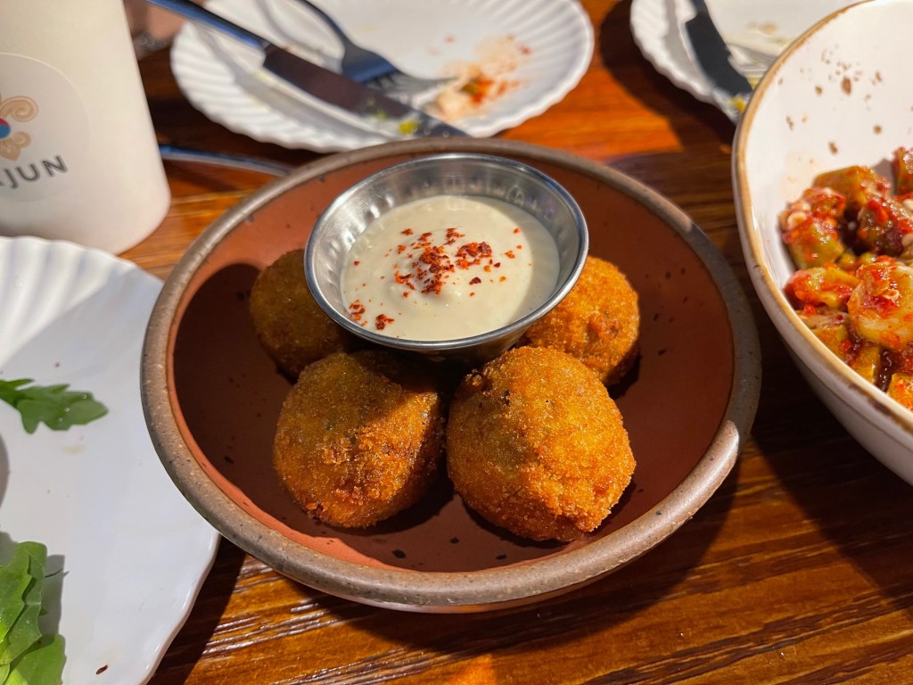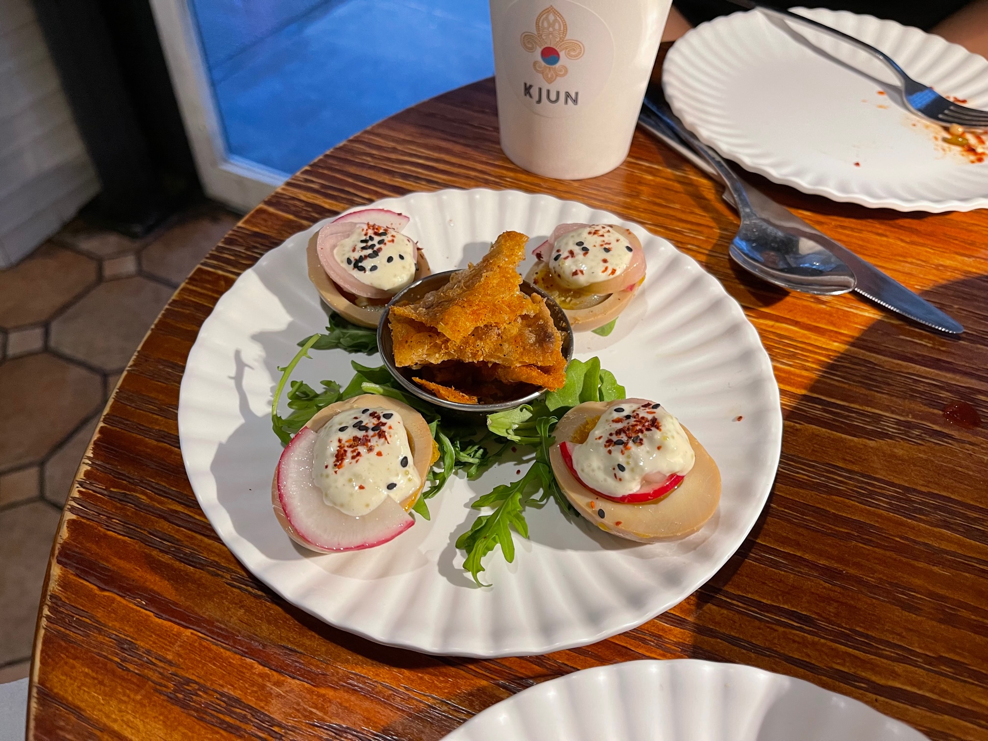Jung’s resume is one of the most impressive I’ve seen (August, Herbstaint, and all sorts of Michelined NYC establishments), and so is her cooking that naturally morphed into a Korean/Cajun mashup. Hence the name, Kjun. This is her first solo project. While we dont have a shortage of of Korean (especially in that area), nor Cajun, or even NOLA inspired Korean (Haenyeo in Park slope), I cant think of anything remotely like Kjun.
