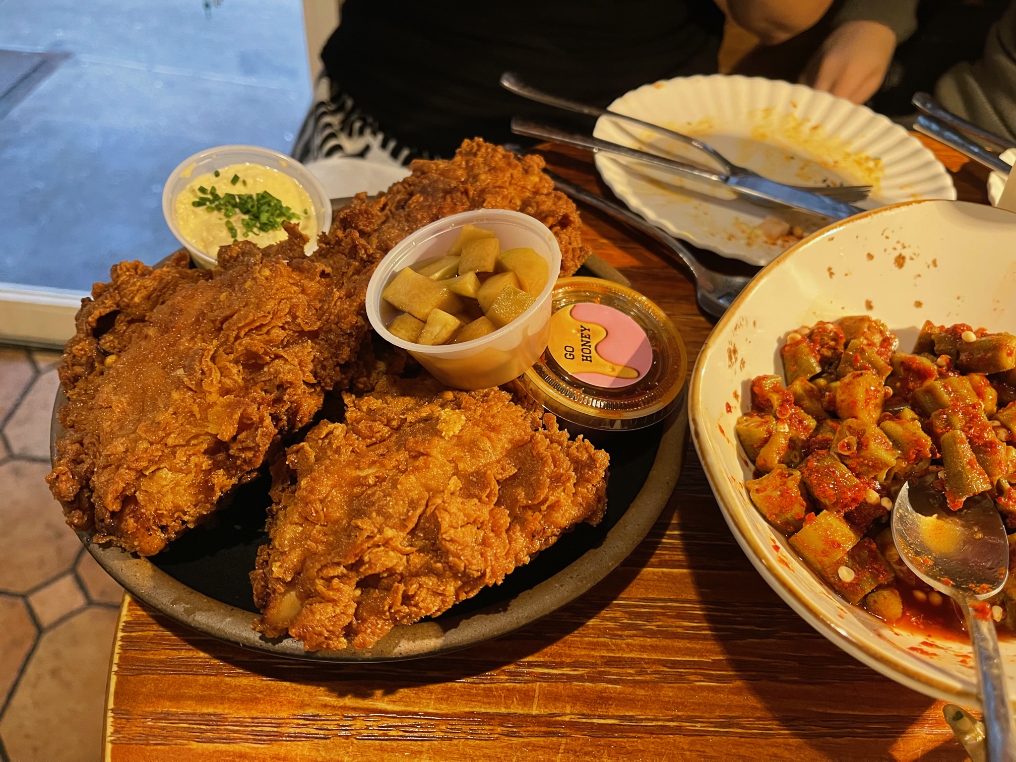 All the larger dishes were solid especially the Jambalaya featuring a nice cabbage Kimchi action and juicy mixed meat. Beautiful clean flavors that stay with you for a some time. The fried chicken was above average, though I wouldn’t go as far as calling it one of the best in town as Pete Wells did. It was nicely marinated but a bit on the greasy side and too large to work with on such small tables. Sharing it for three required some planning.