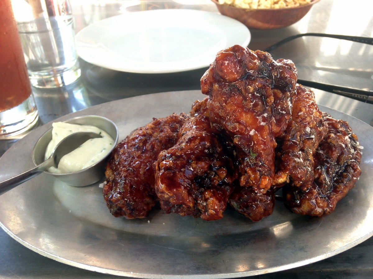 Distilled – Distilled Wings.  A former Momofuku alumni has been quietly dishing out great wings in Tribeca.  Distilled may be better known for their mixologist team as of late, but those wings have been on the menu since day one.  These are grade A quality hefty wings.  They are double fried to crispy perfection, and coated with a thick and messy layer of Gochujang (that fermented Korean sauce you put on your Bibimbap).  And they serve it with their own version of not too funky blue cheese dressing to cool things down.  Truly excellent wings.Distilled wings