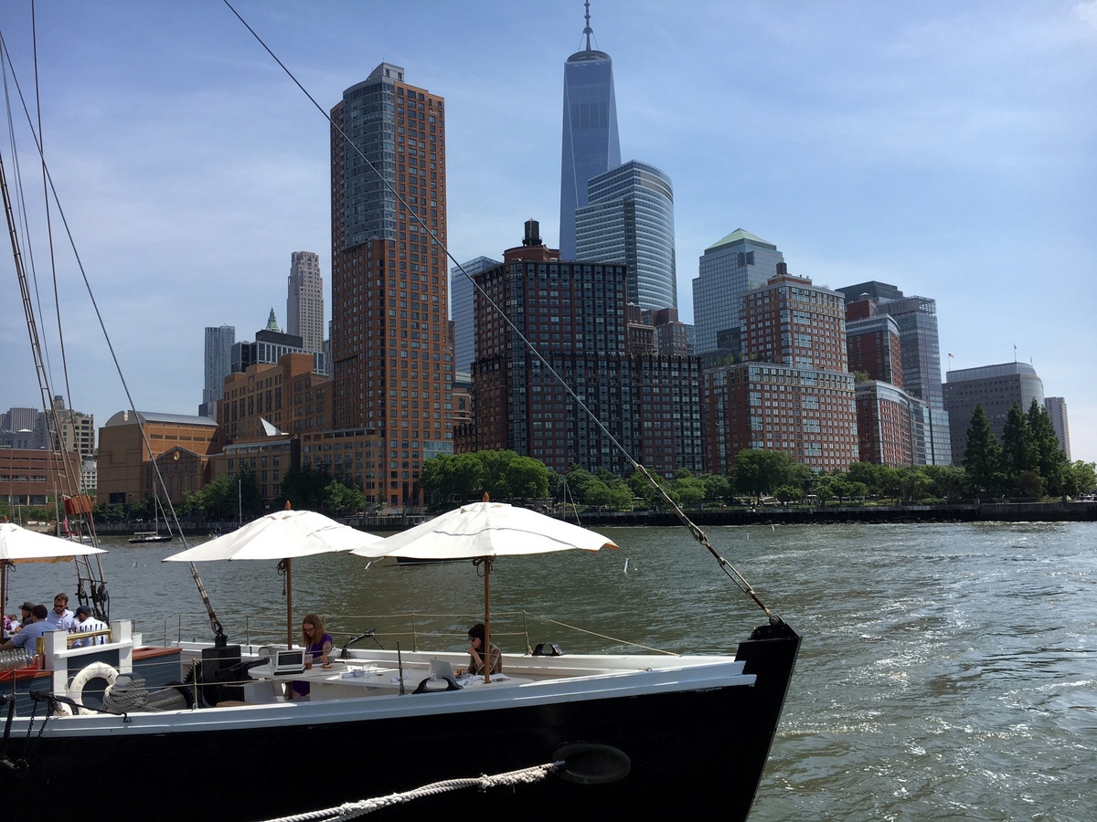 Grand Banks ViewA rare post about a meal that frankly wasn’t great.  I dont normally write those, and I’m not necessarily starting now.  On the contrary in fact, this is a recommendation.  On occasion, even foodies have to swallow their pride, and eat overpriced potato chips with a hint of sea sickness, and a view that turns those potato chips into very good potato chips.  Just dont be me and forget your big boy camera at home.  Even take a photography lesson if needed for this one.  To have any sort of view in the city, you either need to be up somewhere, or swim somewhere else.  This is the latter.