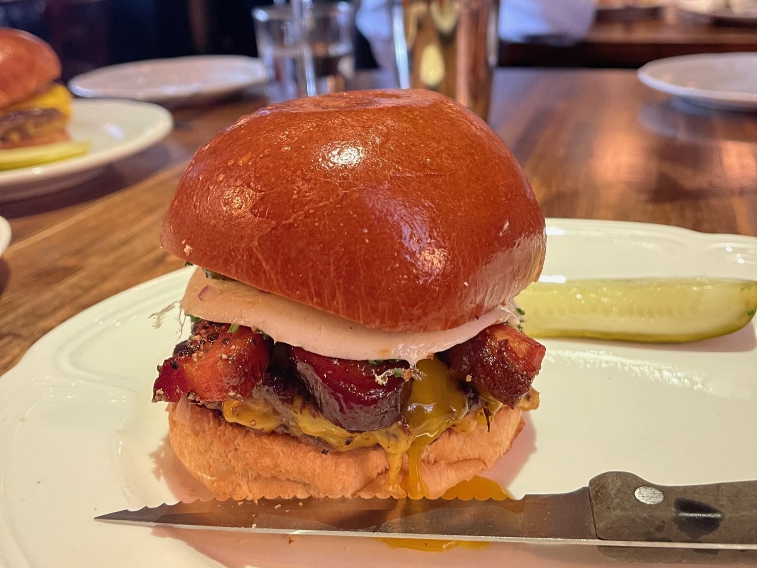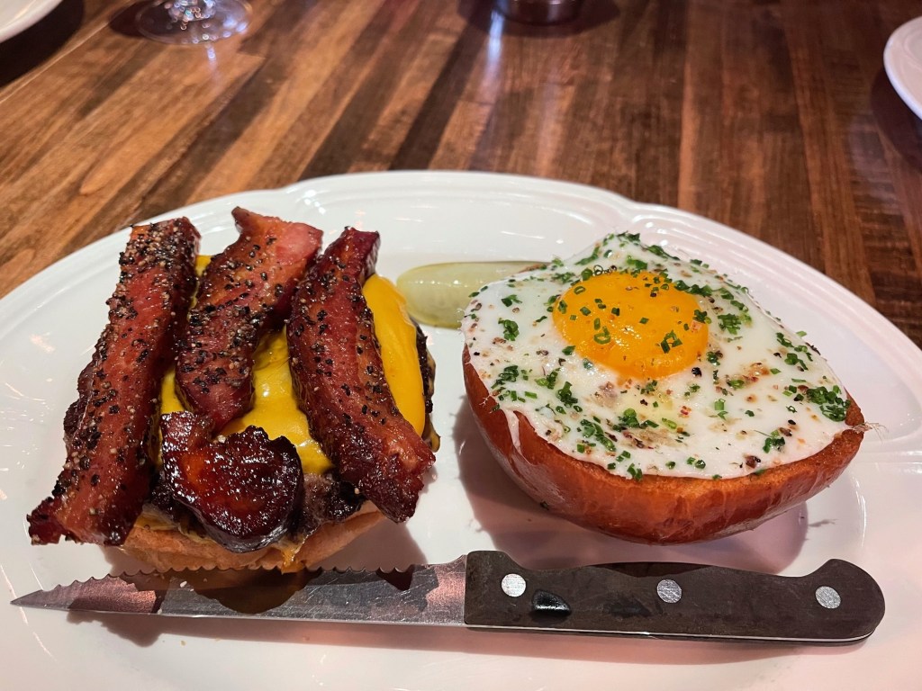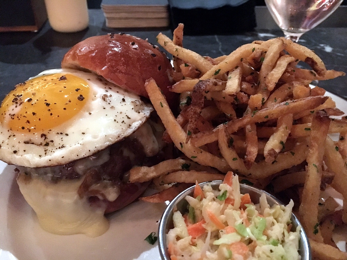 Its not a cheap burger if you opt to include the bacon and egg. Its $22 without, and just north of $30 with. Add the fries which I recommend sharing, and its way past your normal burger with fries price. But thats Manhattan for you these days. As for the rest of the menu, its actually quite interesting. I heard. I havent even glanced at it, but the many reports sound promising. Some, like Eater even claim, the burger is one of the least interesting items. But judging by how many burgers we’ve seen parading the room, good luck trying to order anything else.