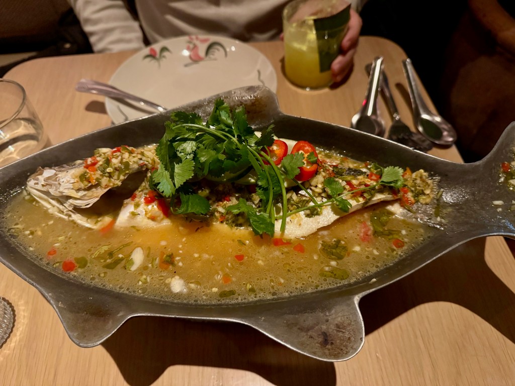 While I didnt really explore the Appetizers column, I get the sense that Kalaya’s strength is with large entrees. A perfectly steamed whole Branzino topped with all sorts of delicate goodies was pure joy with every morsel. A fall off the bone Lamb Shank on an outrageous, well balanced Massaman curry, with potatoes, onions and almonds was fall off the chair wowzer. One we couldnt finish. The silky Cabbage side was another winner.
