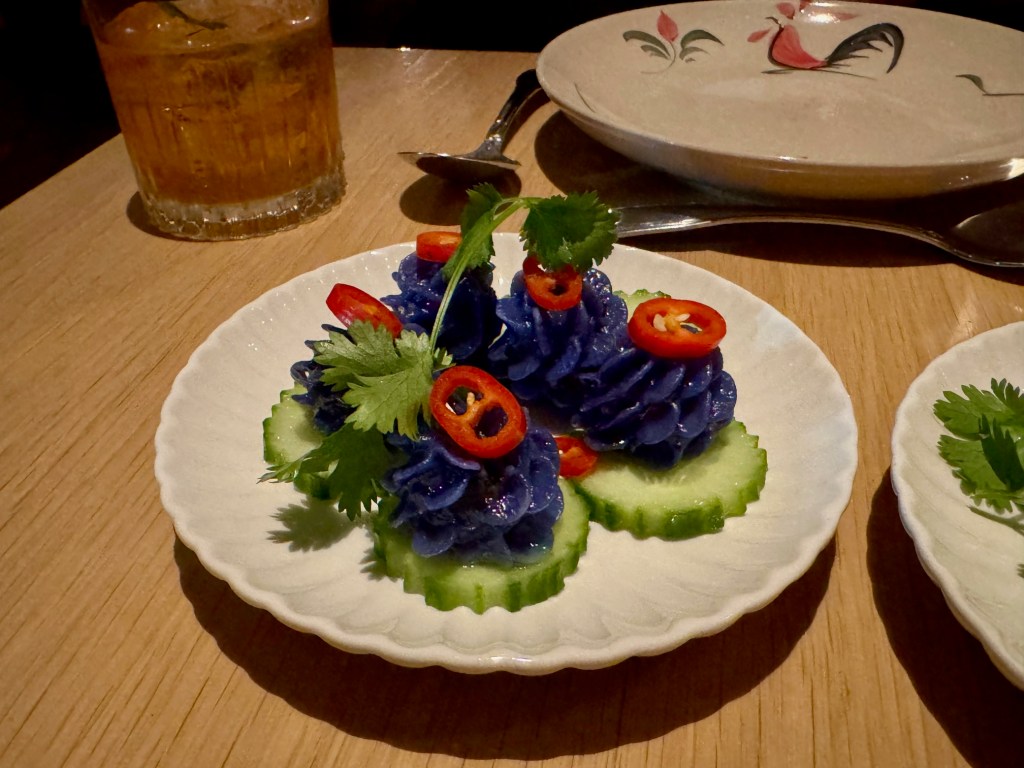 The dumplings at Kalaya are the exception to the rule. Get them for the look, and hopefully you’ll enjoy the taste. The signature bird shaped dumplings with caramelized cod and preserved radish had a mild interesting funk but didnt exactly blow me away. The flower shaped chicken dumplings had a more agreeable flavor and texture. But the biggest surprise was how tiny they were. You could easily kill two birds with one bite.