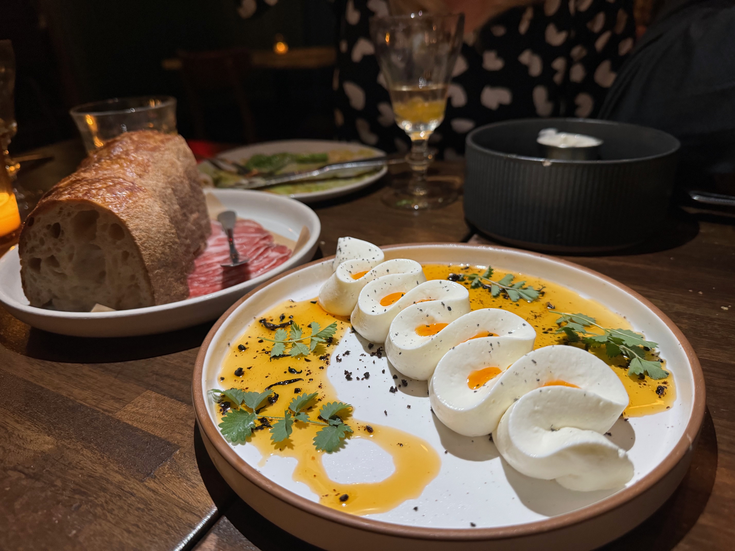Highlights were the house specialty Fried Brie, like mozzarella sticks on crack. Dill fries (dehydrated pickle seasoning) are like the perfect McDonald’s fries. A silky smooth Albacore crudo was probably our favorite overall. Skip the pastas and get more fries.