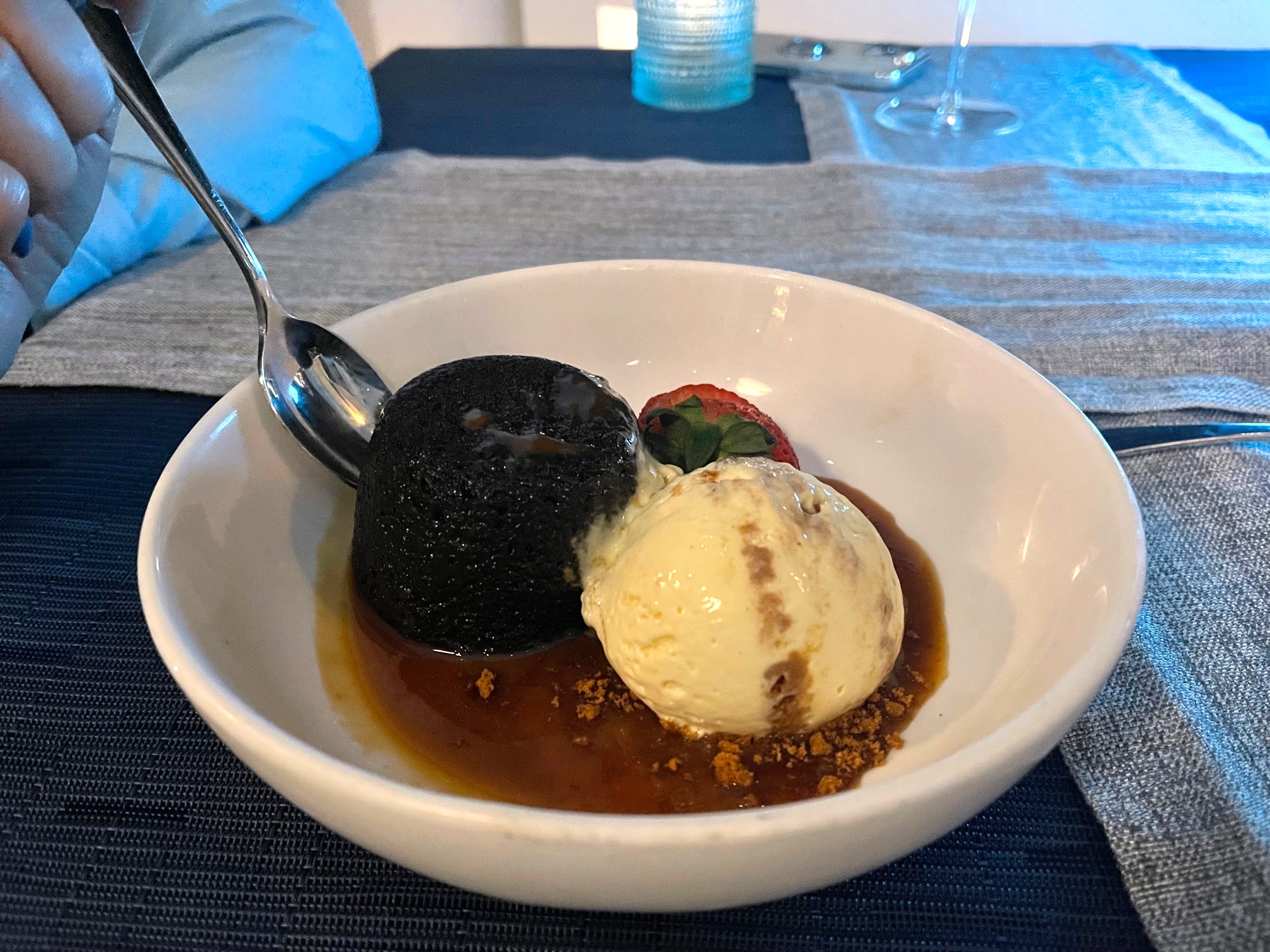 Although it was still windy, the island fishermen went fishing after a 4 day break, hence a superb local grouper special. A hefty, perfectly flaky fish, sitting on top of freshly made light fried rice. This dish worked slightly better than the buttery lobster. Indigo has an interesting dessert selection but being a sucker for sticky toffee pudding I stopped reading the rest of the menu. A tad too sweet perhaps, but still enjoyable and something I’d order again.