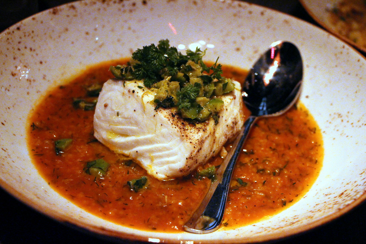 Gato - octopusMains — Crab Risotto (enlarged app) was original and exceptional.  Mushroom and Kale paella with egg and artichokes was a glorious combination of flavors and textures, especially once you mix the sticky “Socarrat” from the bottom and the egg.  The Halibut was one of the better “white fish with red broth” dishes I’ve had, all due to the addictive saffron tomato sauce with mint and couscous and a perfectly cooked fish.