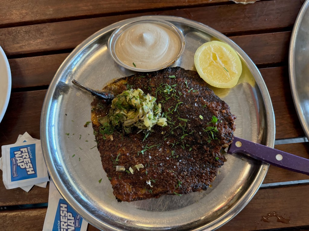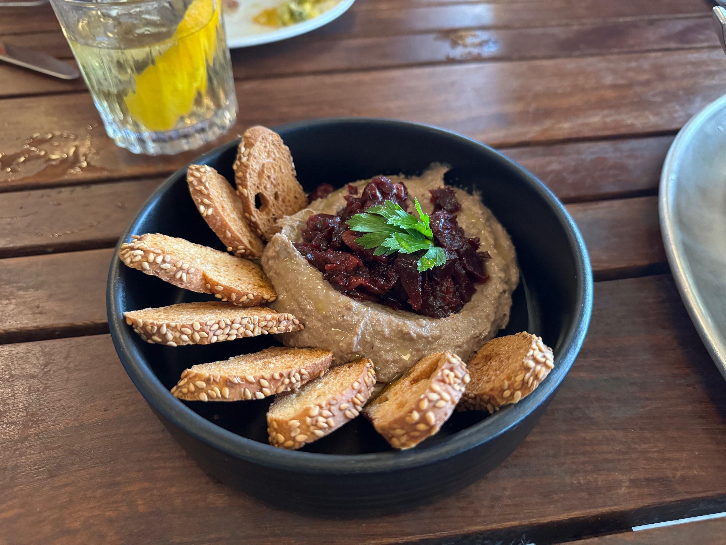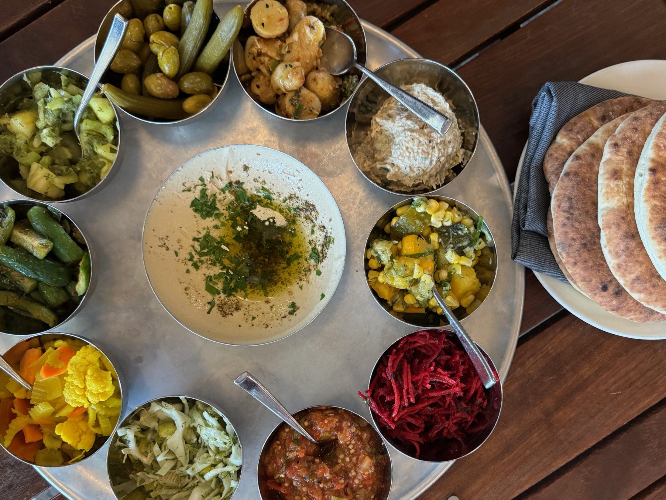 As for the grill items, this time we tasted the newish multi-meat Keves Kebab, a respectable Mititei (Romanian style kebab) like meatballs. And a fine Steak Shishlik that didnt lack texture nor flavor. The Dorade, even though slightly overcooked was a table favorite, and a decent size. There’s even a punchy Date-Harissa Wings that comes with Tehina Ranch from the a la carte menu. Getting that instead of a grill item means adding an order of Hummus + Salatim, unless you are eating solo and/or skip the salads altogether.