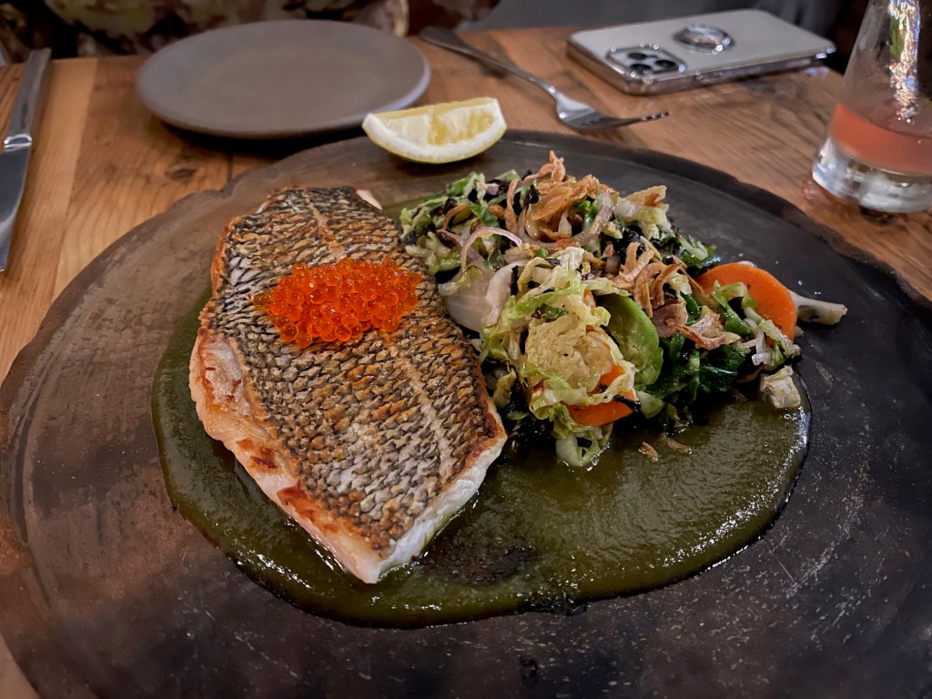 We started with Tuna Tostada, the only dish I’ve had here before. The tuna was bright and flavorful, as were the rest of the ingredients. But its closer to a refreshing salad than a Tostada. Not a bad thing. The Garnachas de Venado was the first moment of brilliance. Two thick fried corn tortillas shaped like small hockey pucks, topped with braised venison. But what made the dish was the accompanied Curtido (fermented cabbage). Another winner was the outstanding Black Bass with green mole, topped with smoked Trout roe, and another beautiful concoction of Brussel sprouts, cabbage, and more.