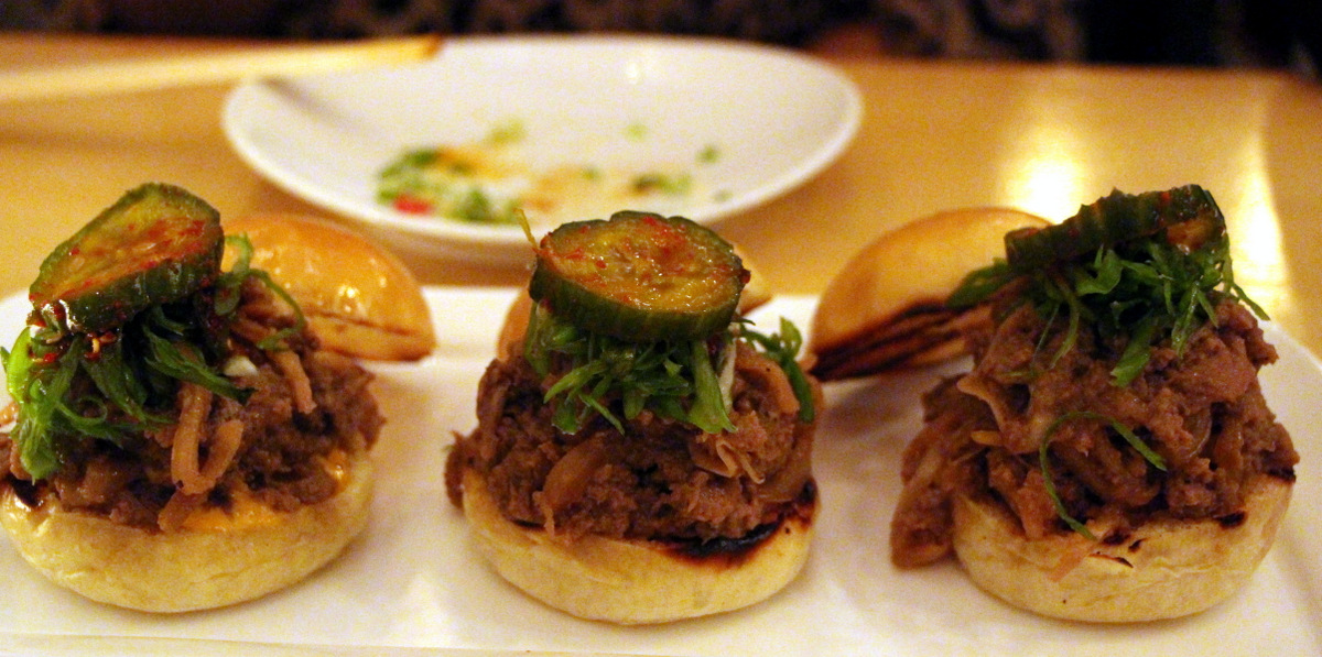 Ma Peche – Jerk Wings. (Upate 9/19/16: Havent seen them on the menu in a while due to rotating chefs. Shame, shame, shame!). If I have to pick one, this is probably it. The love affair started with the wings being part of the cart service. Whenever I would bring guests here, my attention span would drop to wings researcher levels until I’d finally spot the cart of dreams carrying them. These days the wings are part of the menu and they are better than ever. An explosion of complex jerky, zesty, habanero, brown sugary flavors fill your palate and stay for a few good minutes, or days sometimes if you don’t rush to wash those hands