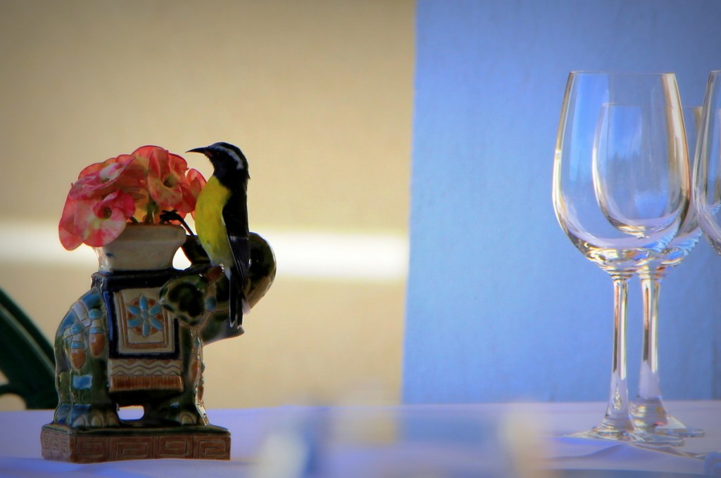 On the other end of that spectrum, was our private lunch the next day at Hibernia. If “private” means alone, than I suppose this was private, but not in the usual Private Dining sense. Regardless, when we sit there and start bringing up our most memorable alone meals like at a small Portuguese wine making Quinta overlooking the Douro river, we are essentially in the midst of one of those meals. But when we start talking about some of our most memorable meals ever, perhaps we are in the middle of something more special than that. Describing the Hibernia experience requires me to dig into my emergency vocabulary vault and blow the dust of words like Umami, Mystical, Gorgeous, Divine, and Unicorns! At some point during the meal I thought the only thing missing from this experience is a unicorn or a beautiful little yellow bird. Moments later the latter shows up.