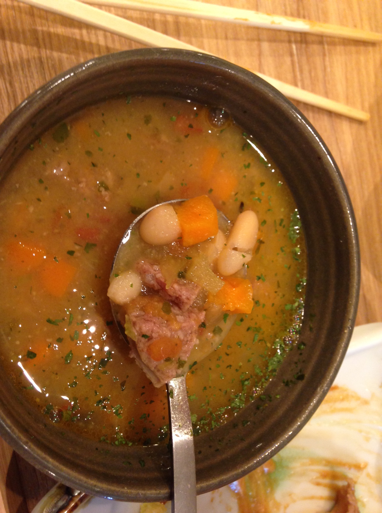 The Rest – Indie Fresh at Gotham West Market got unusual and healthy soups like Borscht that can even make a Babushka blush… a rather shy Babushka. When I’m in the mood for something simple like white bean or split pea soup I head to my friend Anna at Café Ole. Sometimes when I feel naughty, I get Ezra’s terrific split pea with my falafel at Azuri Café. Mocu Mocu serves a most unusual Miso with white bean and Sausage. RIP Bis.Co.Latte, and Holly’s amazing soups
