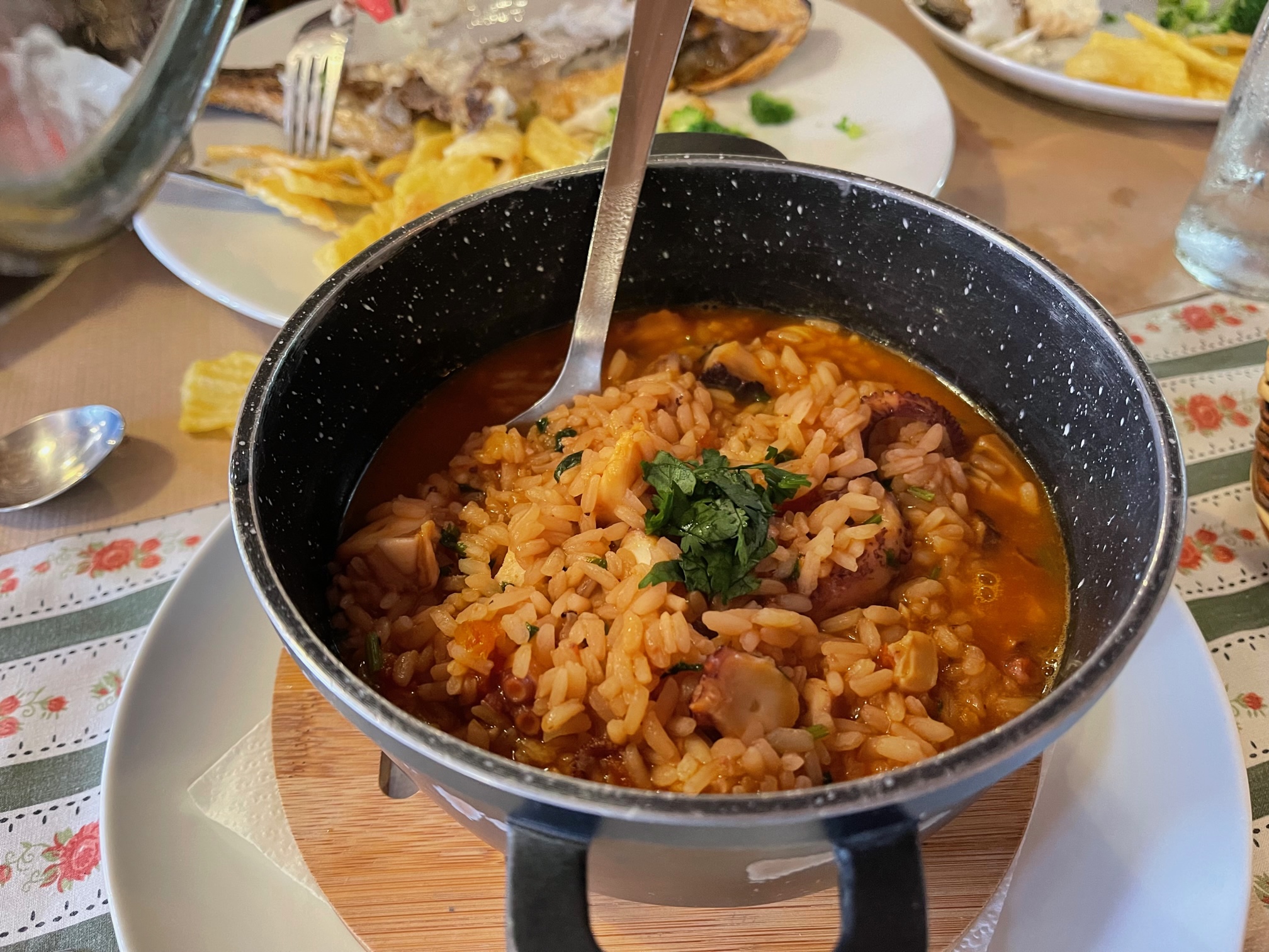 We knew this is going to be one of those meals when we were greeted with port and tonic, which essentially established our drinking foundation for the rest of the trip. A lavish, local Flor do Valle cow’s milk cheese, and a pleasantly creamy vegetable soup got the juices going. Octopus with rice, nicely enhanced by fresh herbs was one of the better renditions of the trip.