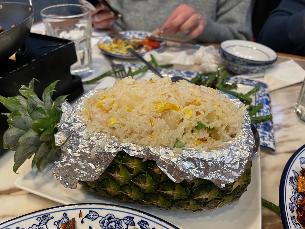 One of my favorite Sichuan dishes is dry fried fish fillets, and the CTX version (“hot and spicy fish fillet” on the menu) didnt disappoint. The only miss last time was the Chongqing chicken, a classic I usually enjoy. The chicken was a bit overly diced, and so too small to balance the strong flavors, though the pineapple fried rice helped. The Kung Pao chicken was more like it, and a fitting dish for the occasion. Its like a nice bridge between American and Sichuan… sweet, sour, and just spicy enough to remind us where we are. Happy New Year!