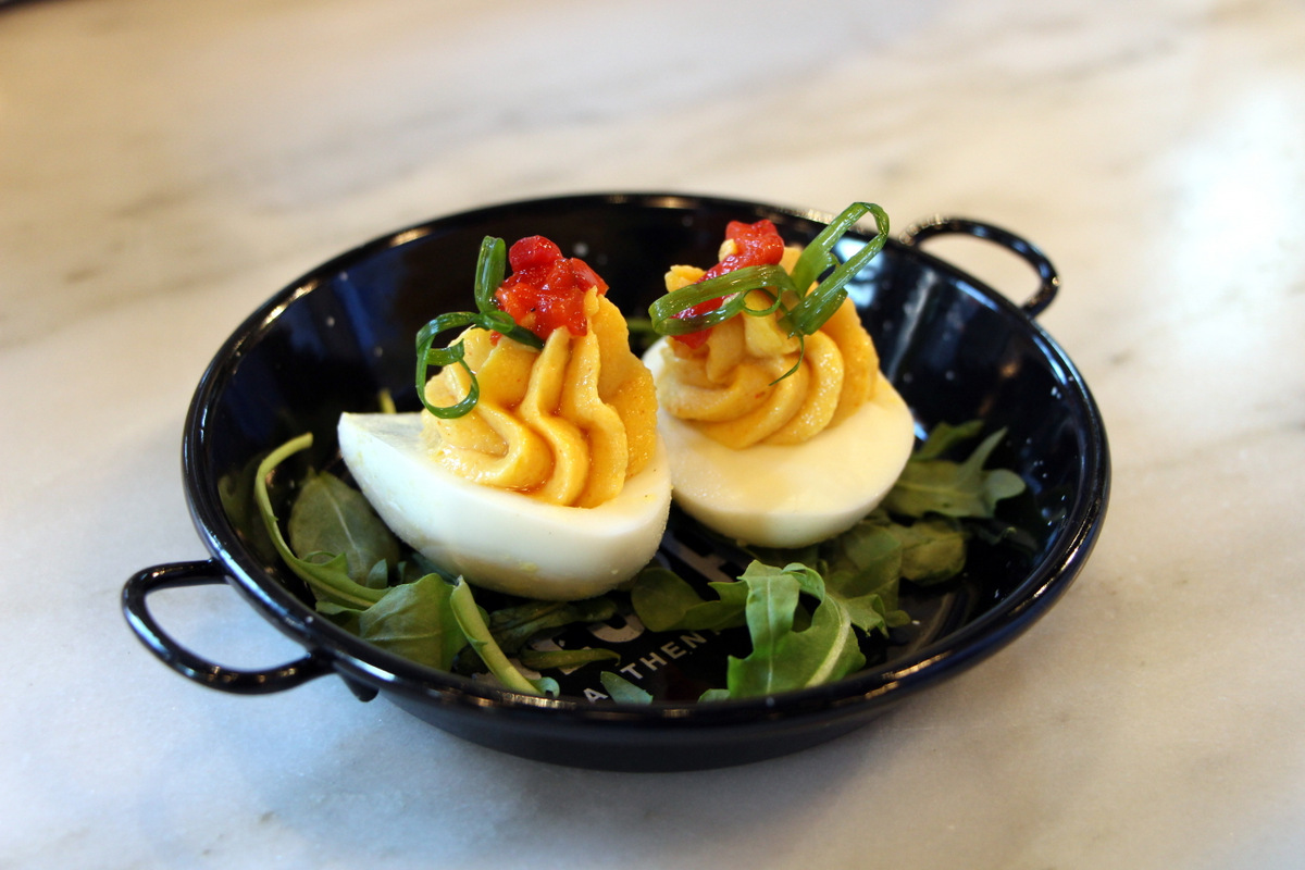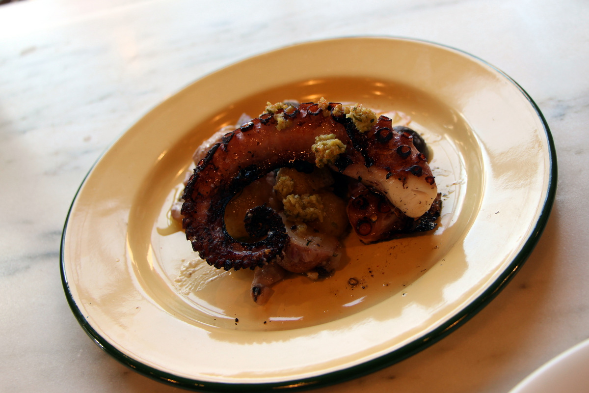 Bacon Wrapped Dates at El Colmado – Explosive come to mind. This is a common Spanish tapas dish that is often uneventful for us but not here. Its larger than usual and stuffed better with Almond and Valdeon cheese. A classic dish from the classic team of Seamus Mullen and Gil Avital of West Village hotspot Tertullia. Welcome to the neighborhood guys. The dates are pictures here on the right